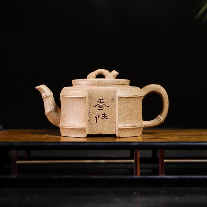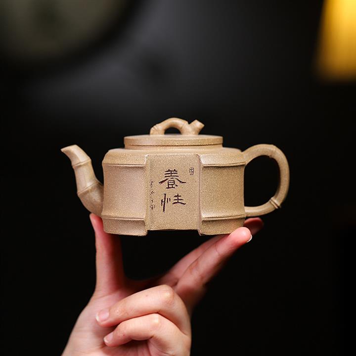 原礦青灰段泥四方竹韻紫砂壺POT4676