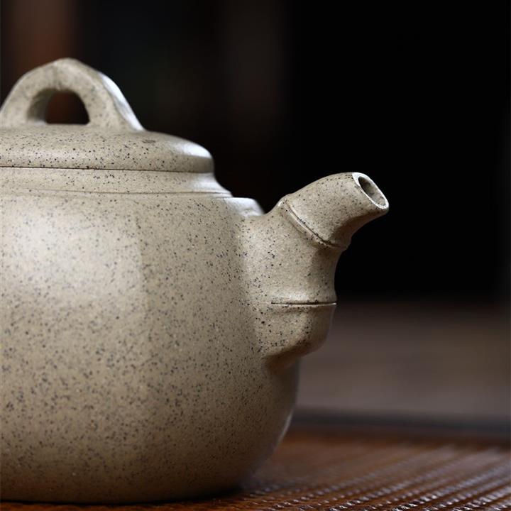 極品白玉段泥竹節六方紫砂壺POT4733