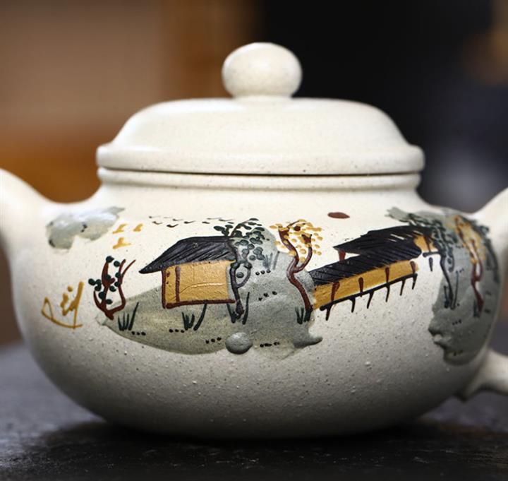【簡介】此壺整體造型優美,線條流暢,泥繪栩栩如生,生動自然,實用耐看,各部位比例協調,更是神韻,出水暢快,暴爽如柱,倒茶暢快,七寸不泛水花,選此一壺,美好時光,享受茶生活。