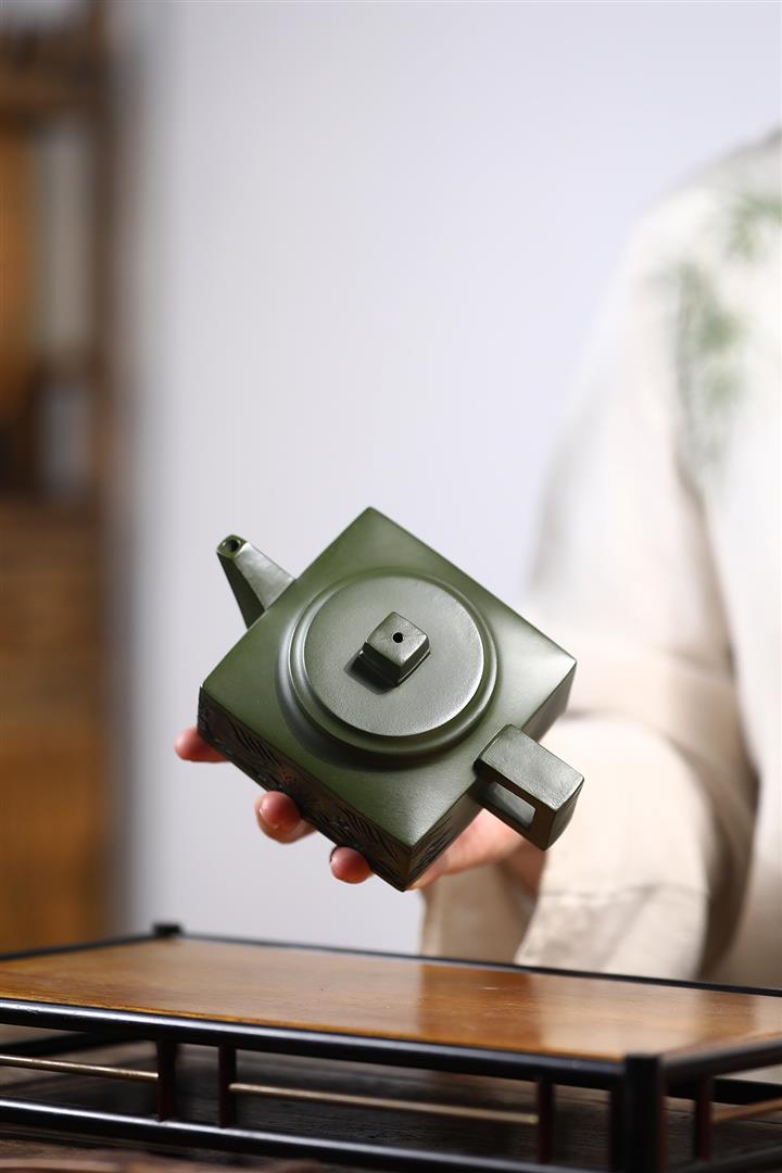 原礦豆砂青淡泊四方紫砂壺POT4786