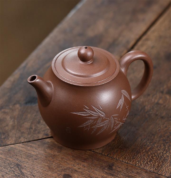 原礦紫朱泥刻繪扁承紫砂壺POT4817