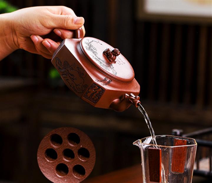 原礦陳腐紫粗砂六方宮燈紫砂壺POT4860