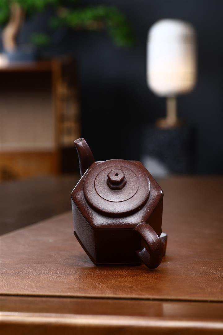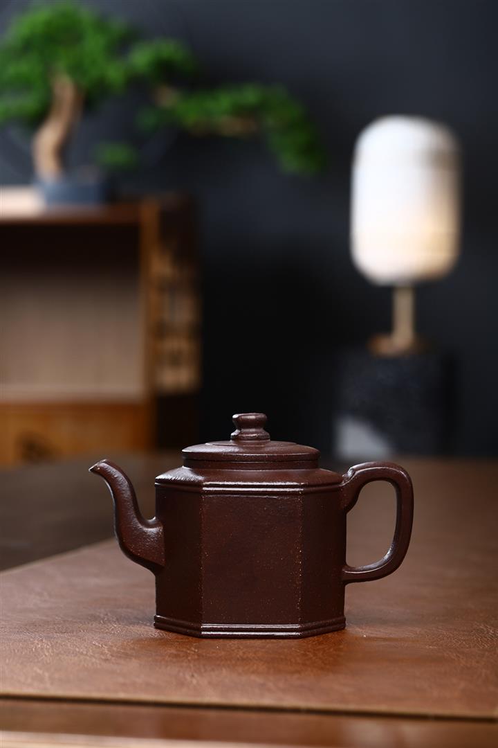 原礦陳腐紫粗砂六方宮燈紫砂壺POT4860