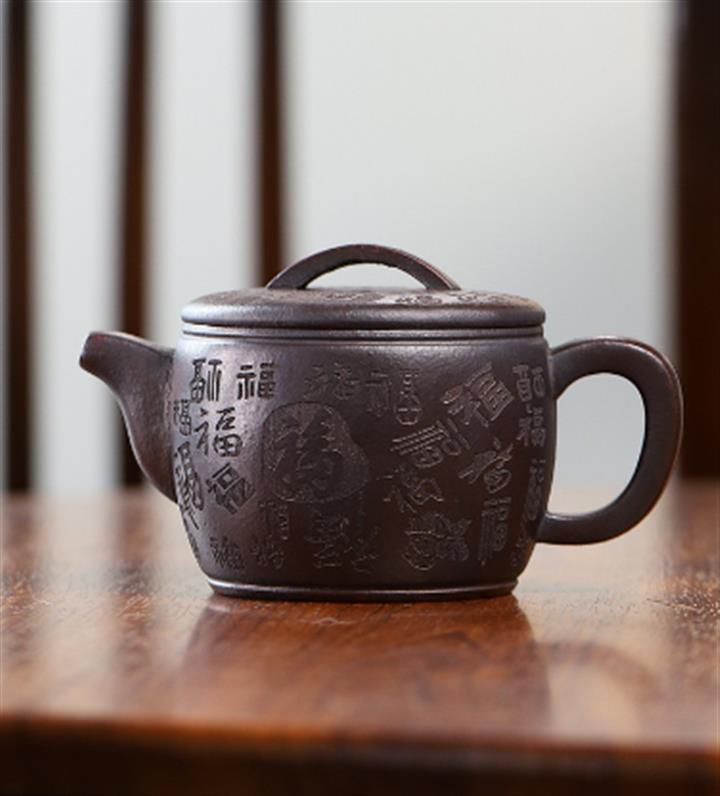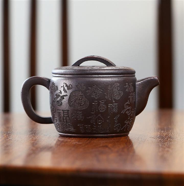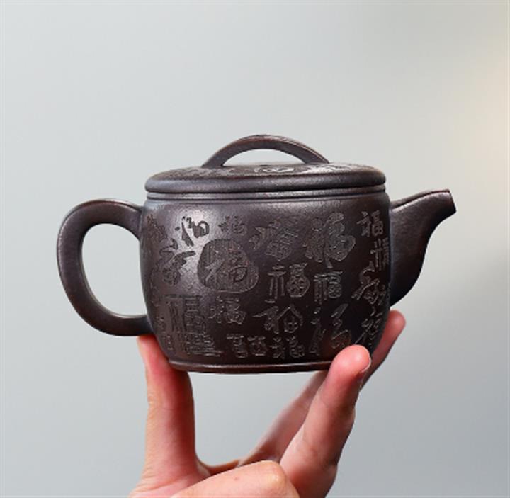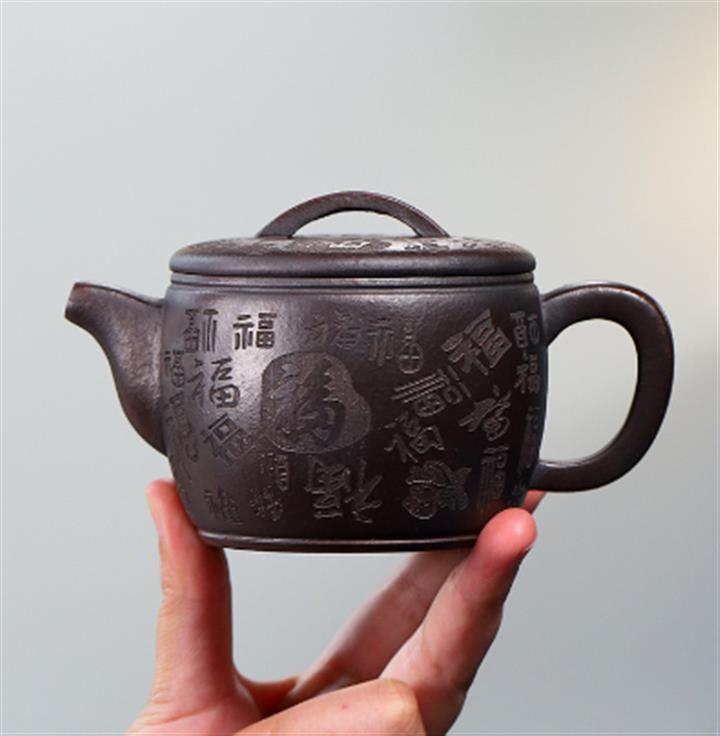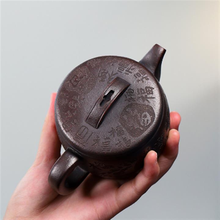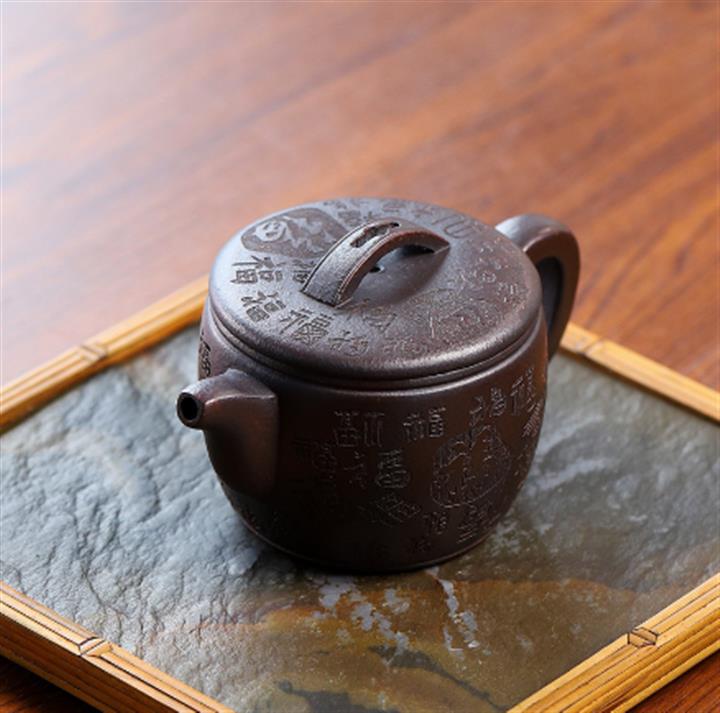 高溫紫泥柴燒百福漢瓦紫砂壺POT4911