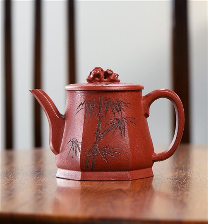 稀有紅龍血六方竹石紫砂壺POT4915