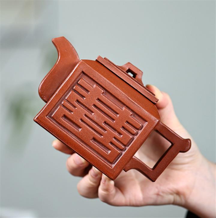 【簡介】該壺比例協調,器型別致,壺身雙喜造型,15孔出水流暢,泥料透氣性好,容易泡養,送壺繩。