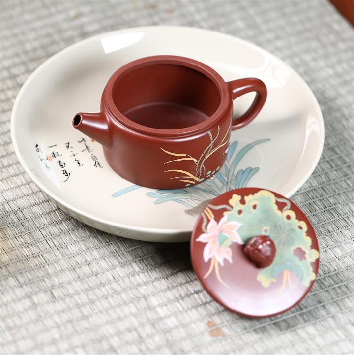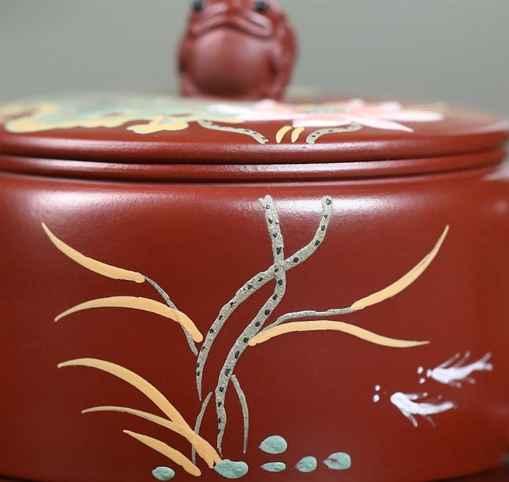 紫泥泥繪六方宮燈紫砂壺POT5042