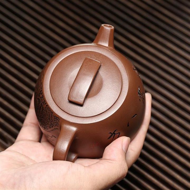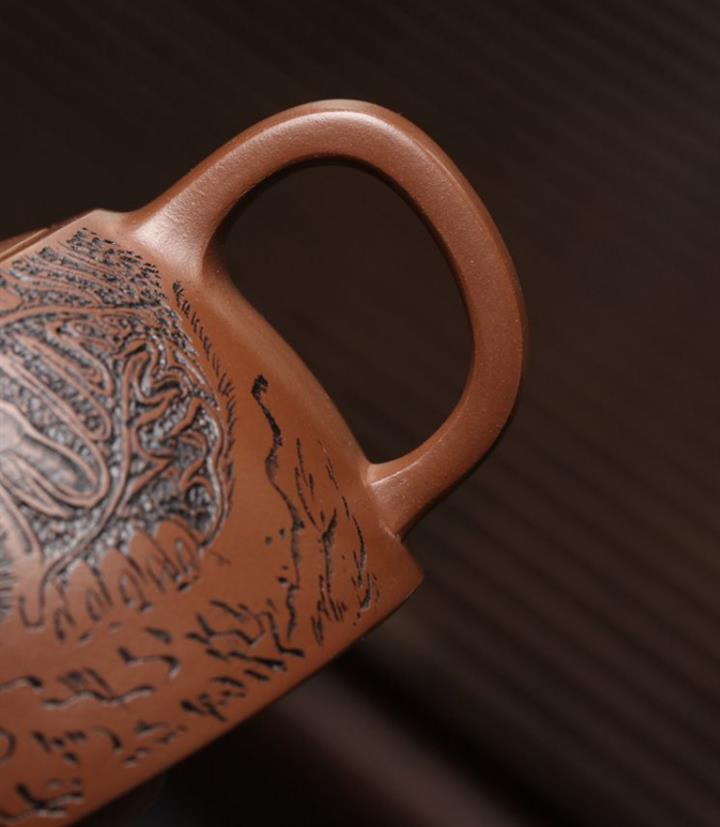 原礦大紅袍泥繪水平紫砂壺POT4996