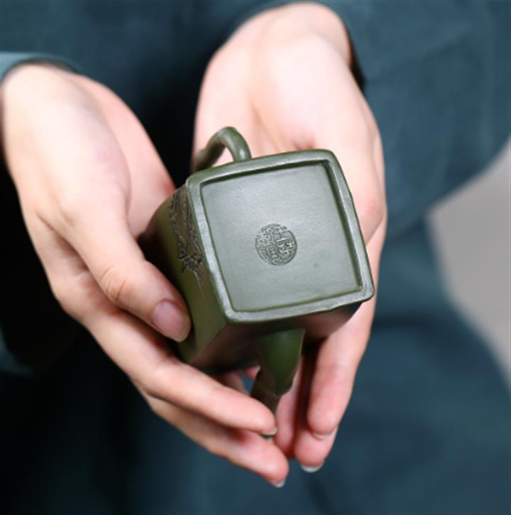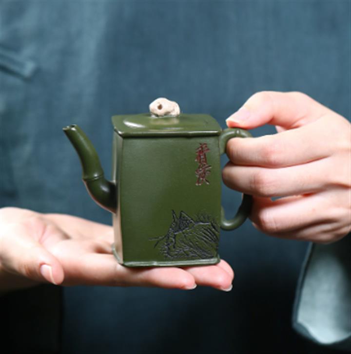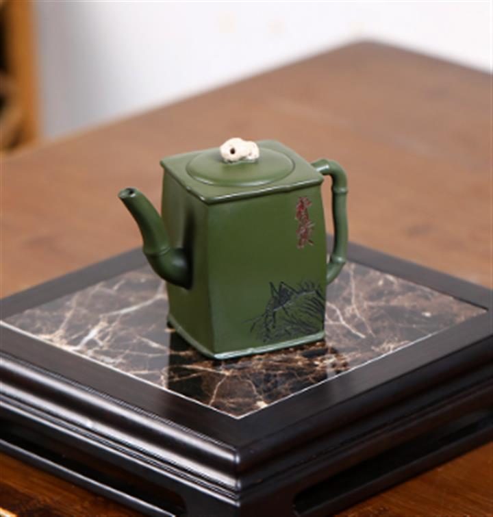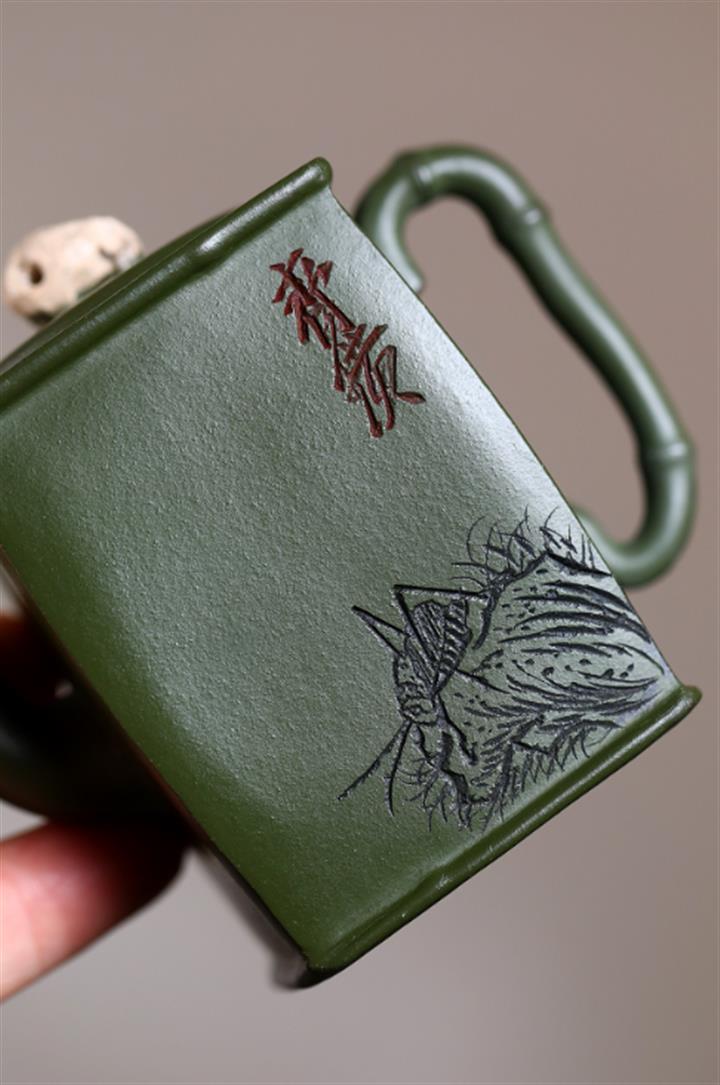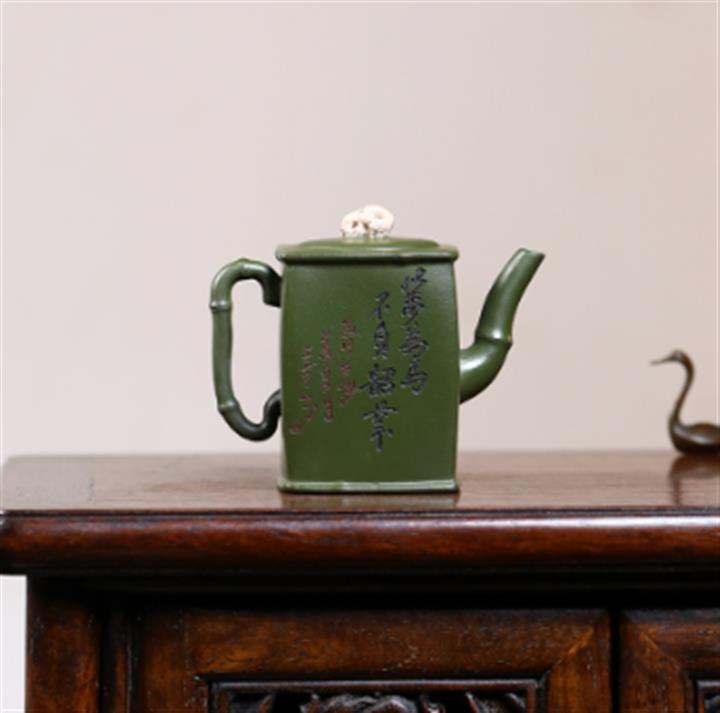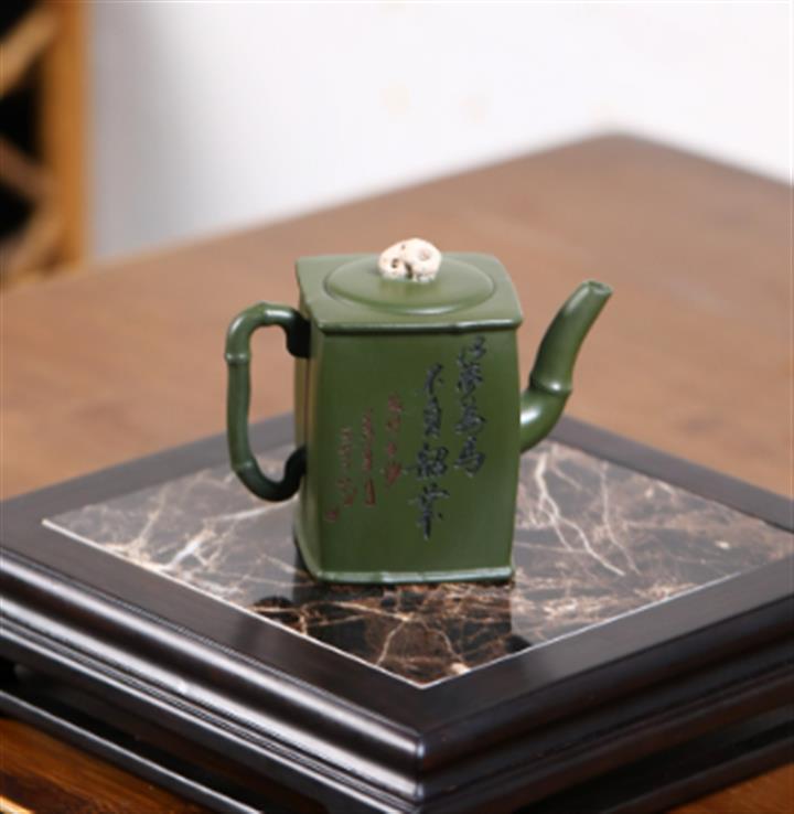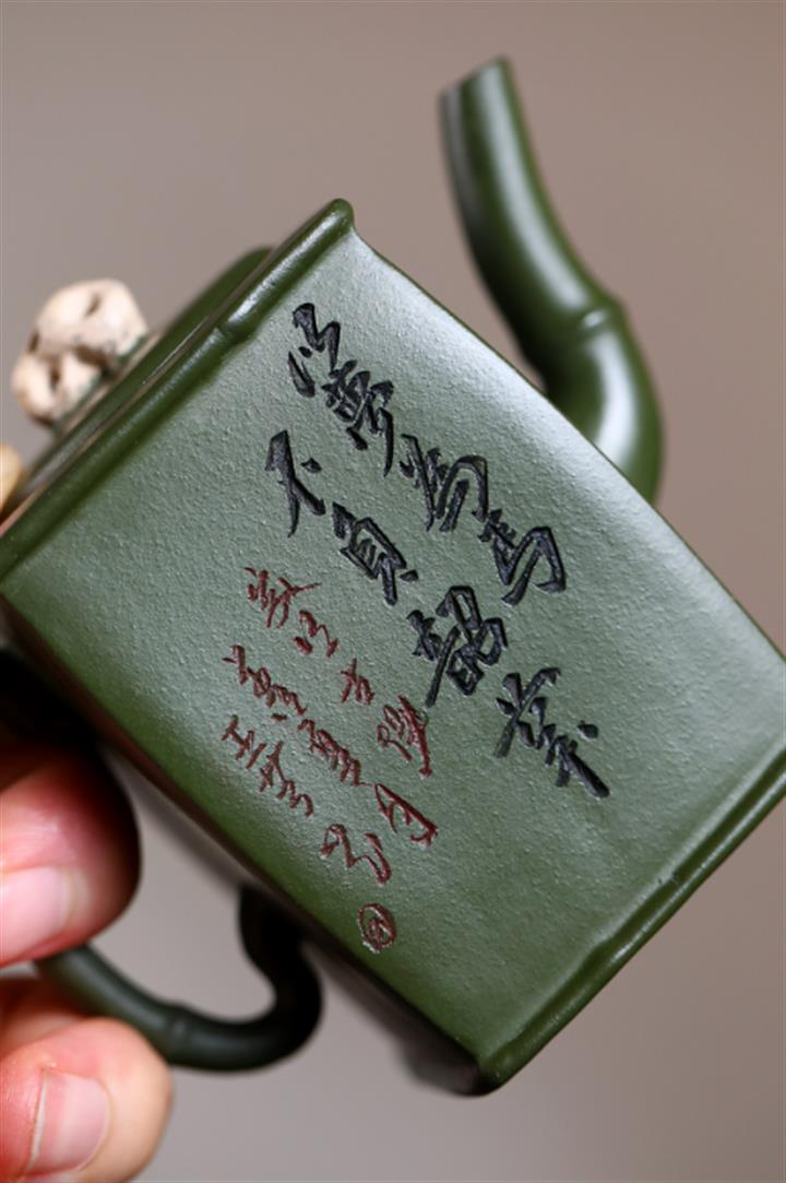 原礦豆砂青太湖石四方竹節紫砂壺POT5092