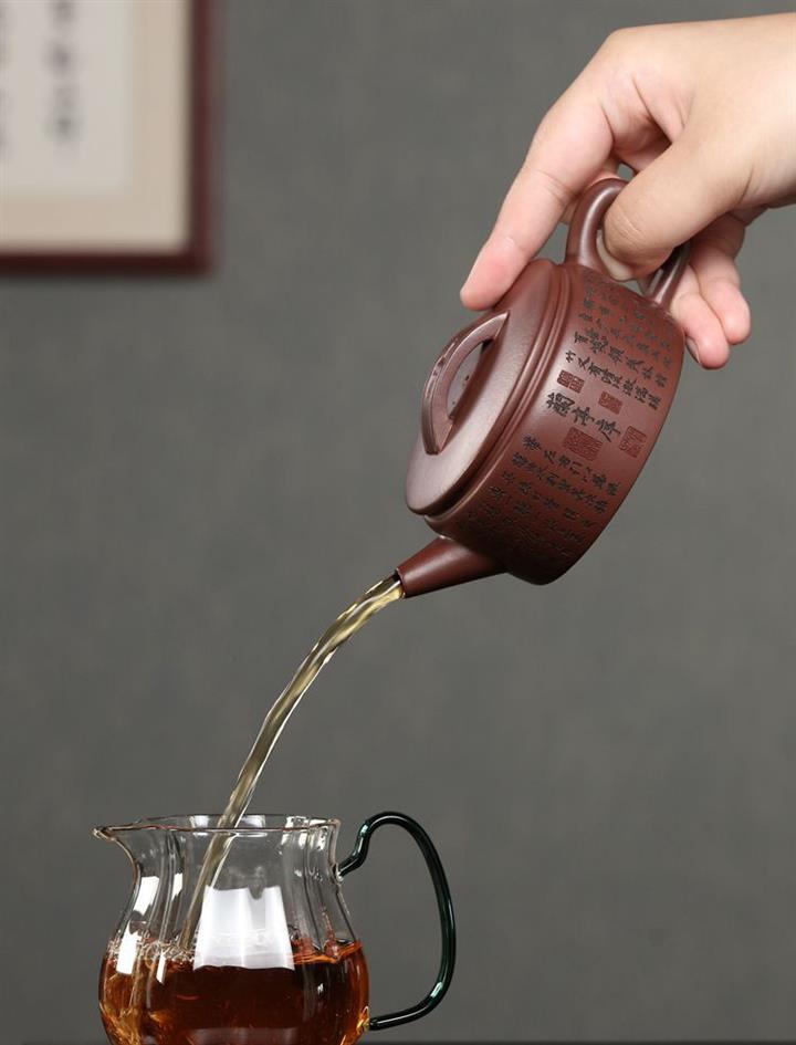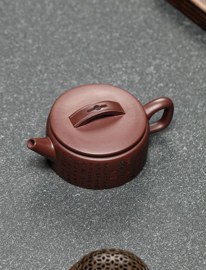 【介紹】漢瓦壺,圓器當中的壹種,古樸端莊,溫和典雅。身直而口大,平蓋板子母線吻合,很是闊朗大氣。橋鈕上镂雕裝飾,更添古韻。直嘴圓口,出水流暢,耳型端把,彎曲有度。漢瓦壺蘊含大氣素樸與大巧若拙的傳神壺韻,是衆多愛壺茶友幾案桌台上必不可少的品茗兼屬把玩、觀賞、收藏之壺形