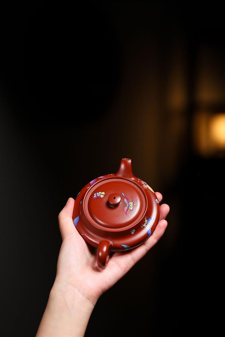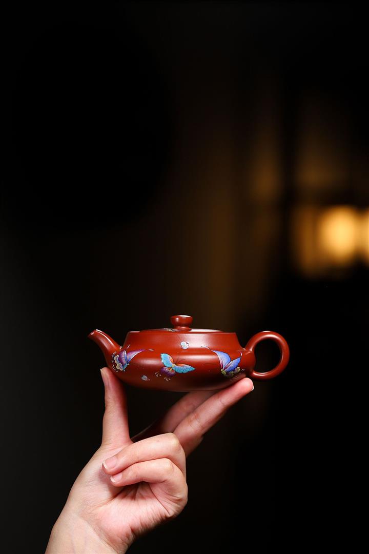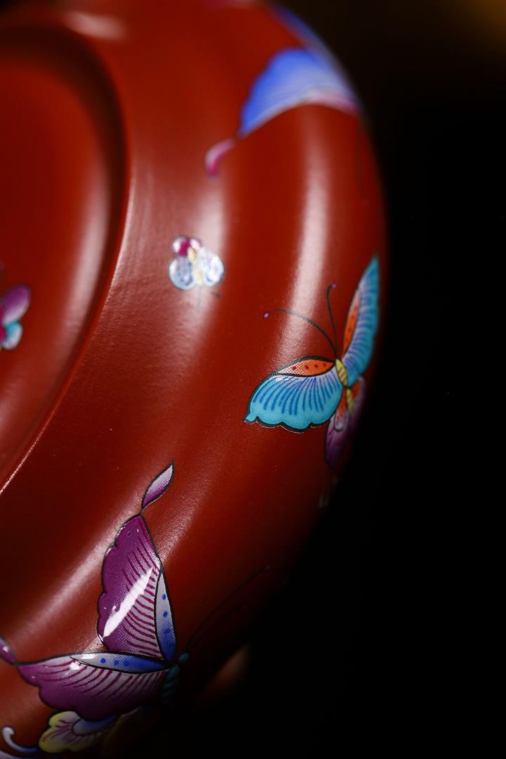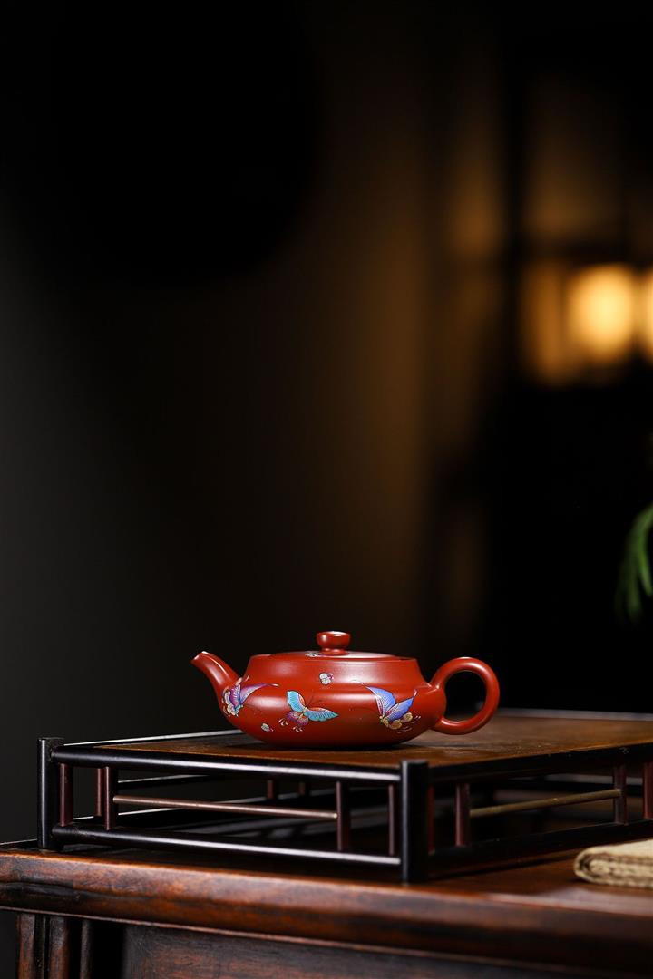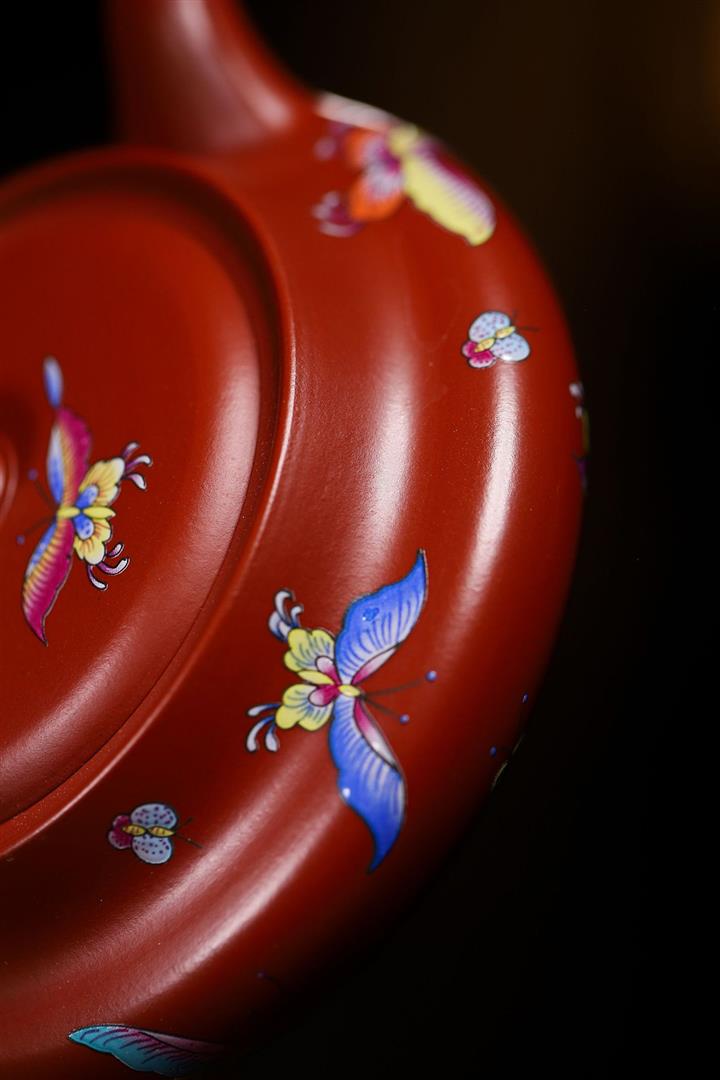 大紅袍彩繪蝴蝶桑盤紫砂壺POT5417