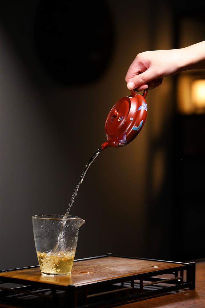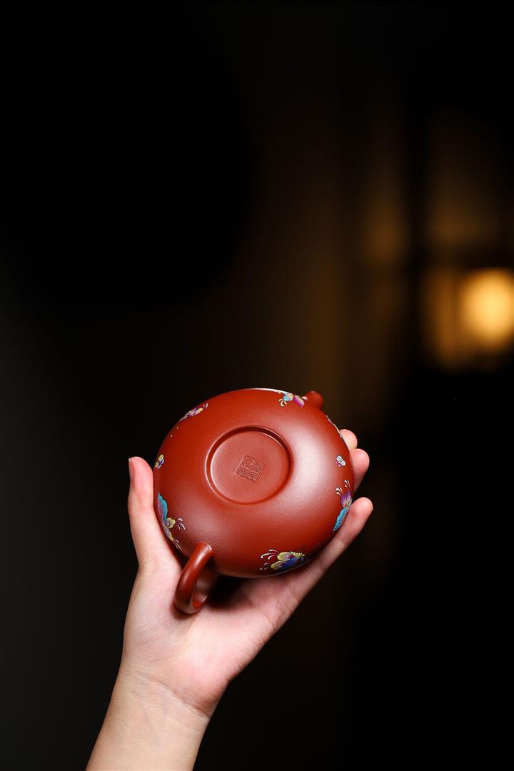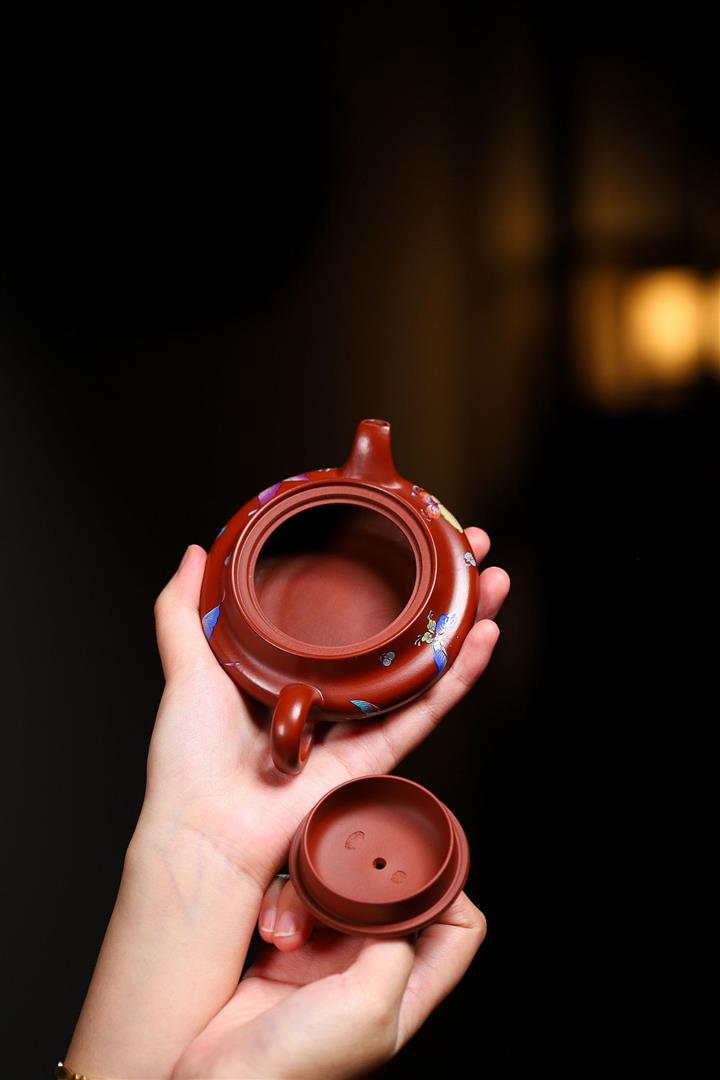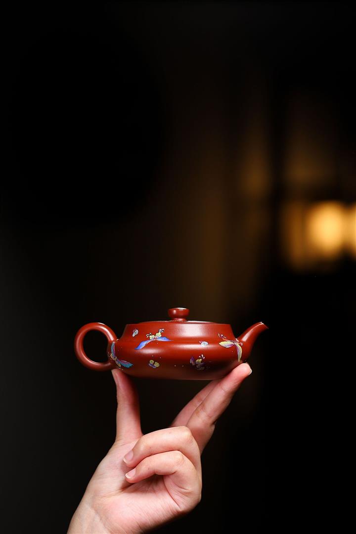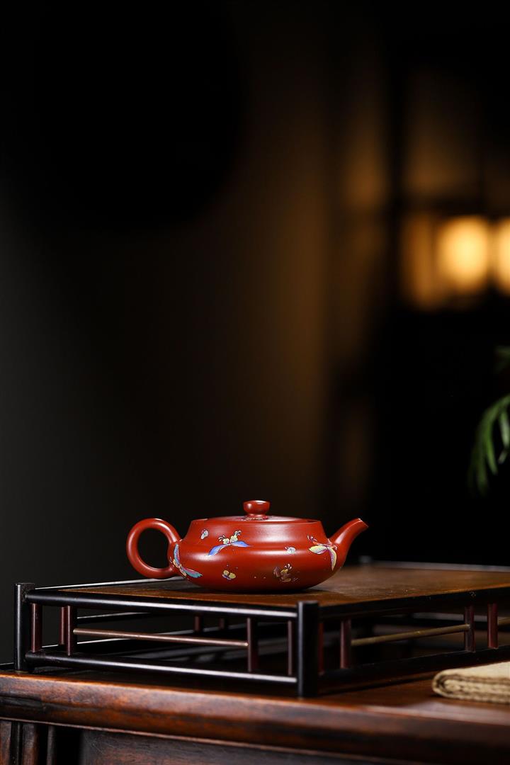 大紅袍彩繪蝴蝶桑盤紫砂壺POT5417