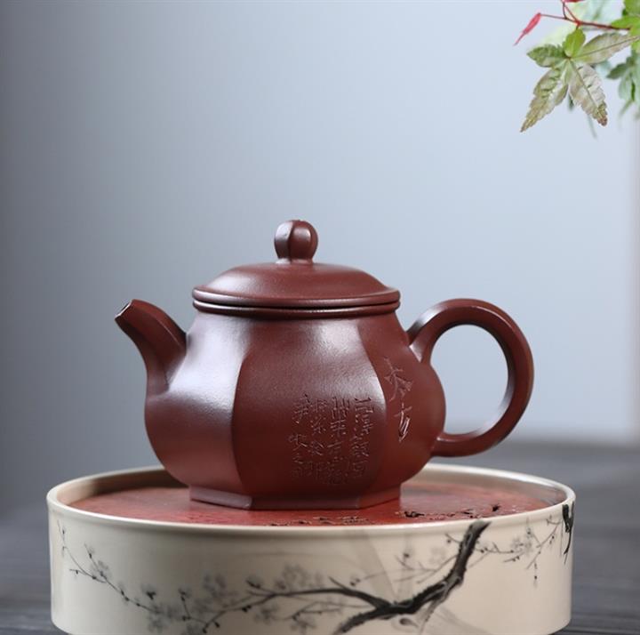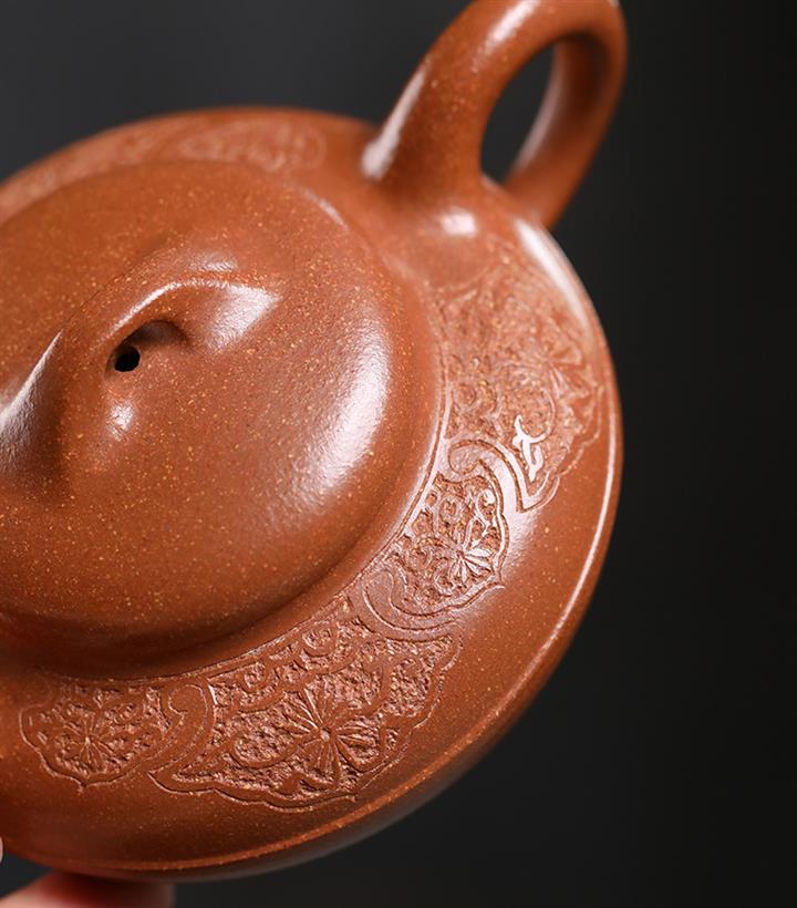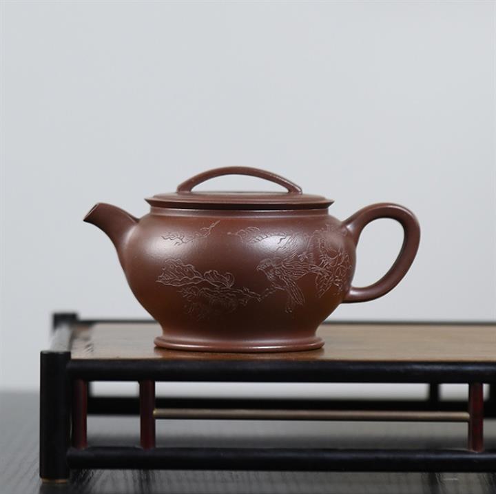 原礦紅皮龍刻竹漢瓦紫砂壺POT5455