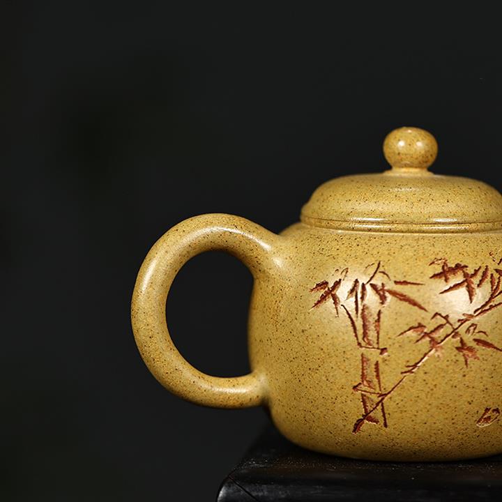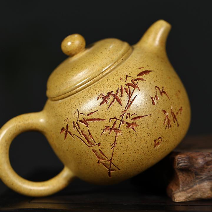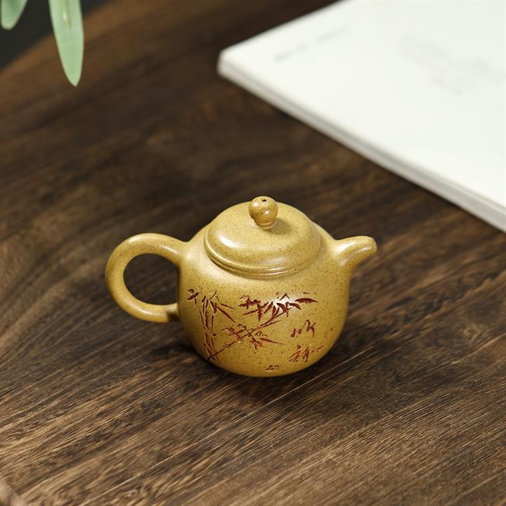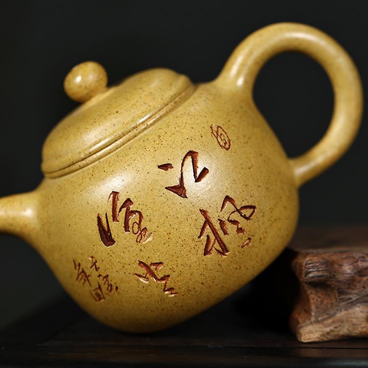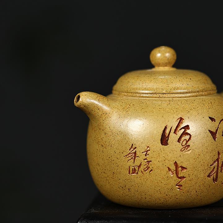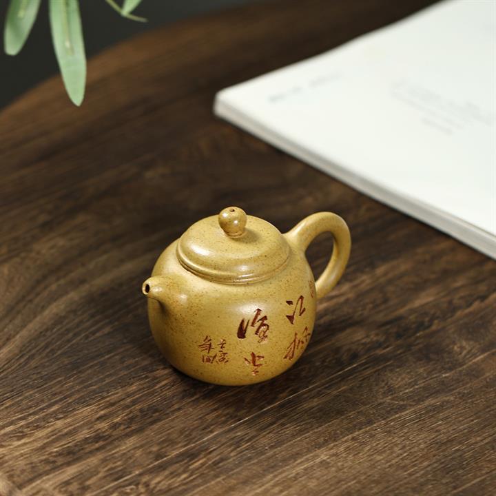 【介紹】此壺名為匏尊壺,是紫砂壺中的經典款型。該壺比例協調,器型小巧,壺身手工刻字,高溫燒黃金段泥,出水流暢,泥料透氣性好,容易泡養,配證書,送壺繩,禮品盒包裝。