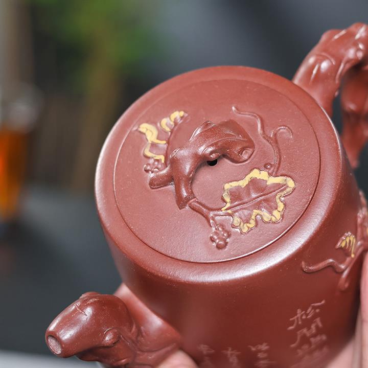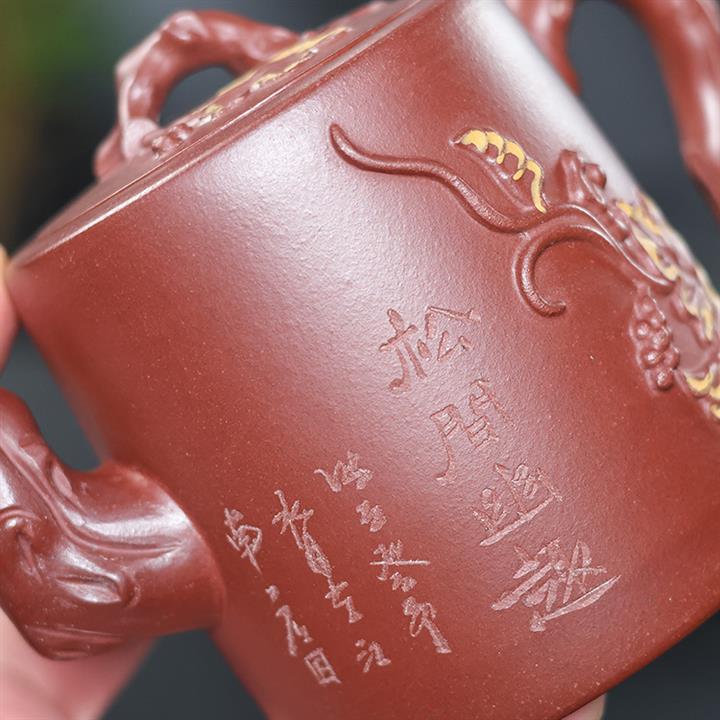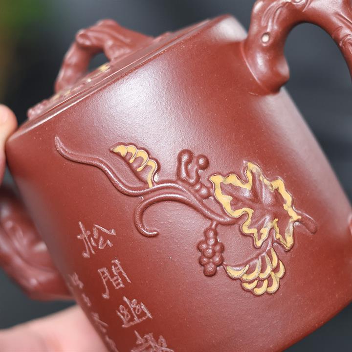 【介紹】此壺名為梅樁葡萄壺,是紫砂壺中的經典款型。該壺比例協調,器型大氣,壺身葡萄藤蔓,出水流暢,泥料透氣性好,容易泡養,配證書,送壺繩,禮品盒包裝。
