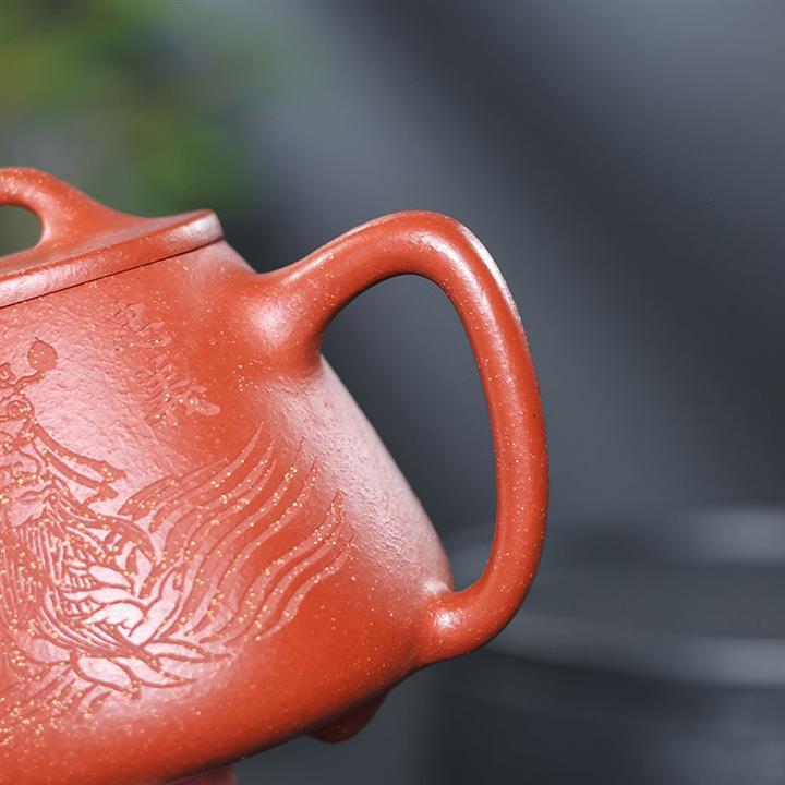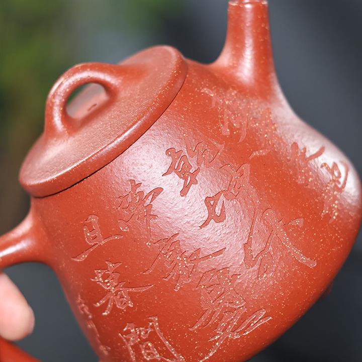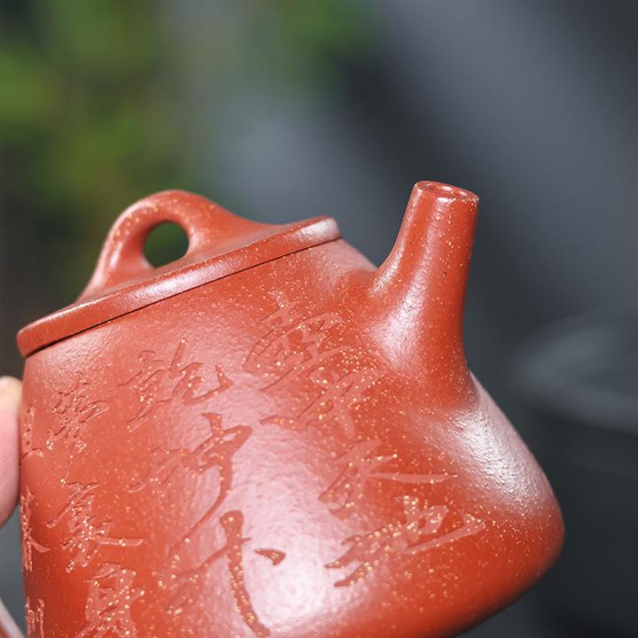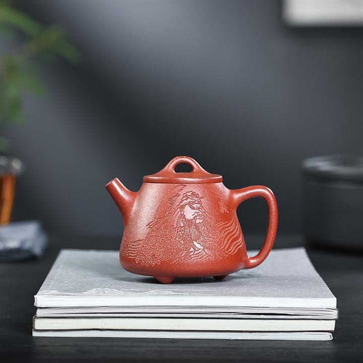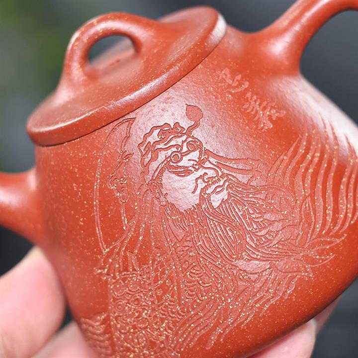 【介紹】此壺名為高石瓢壺,是紫砂壺中的經典款型。該壺比例協調,器型立挺,壺身刻關公,出水流暢,泥料透氣性好,容易泡養,配證書,送壺繩,禮品盒包裝。