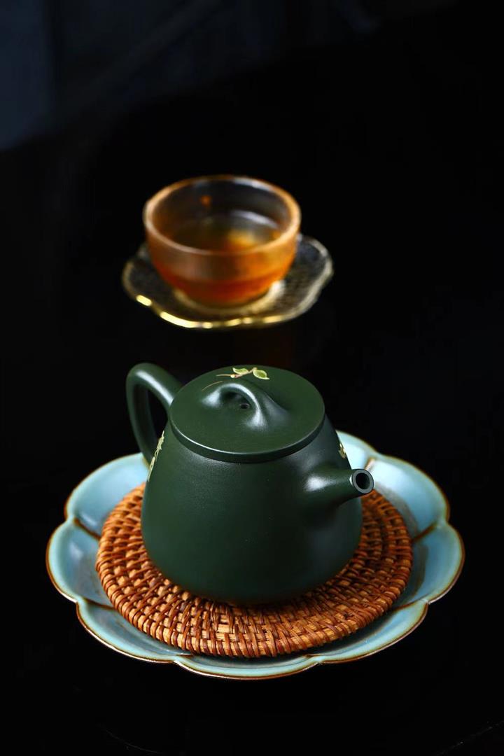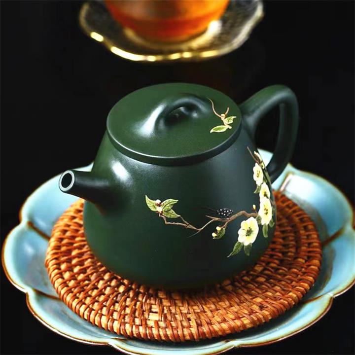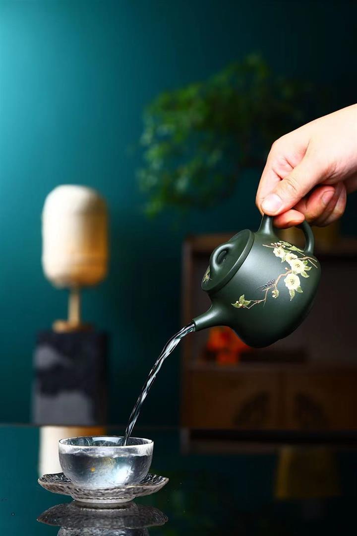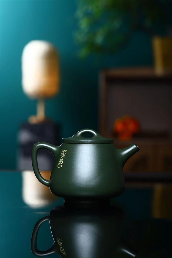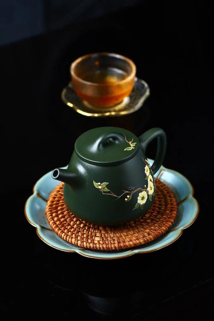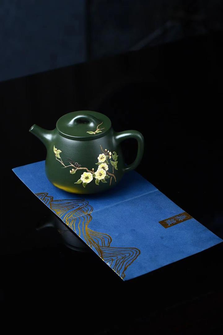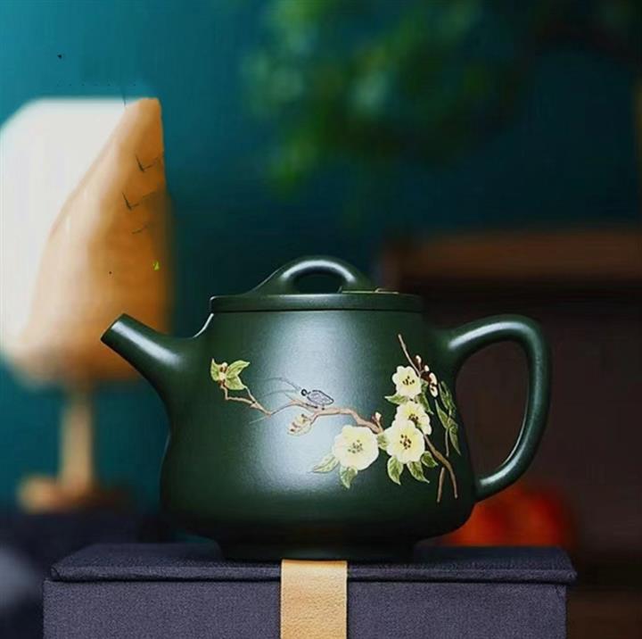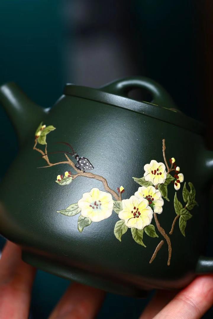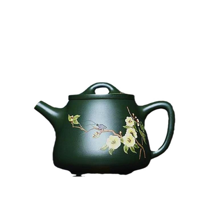 原礦翡翠綠泥繪高石瓢紫砂壺POT5498