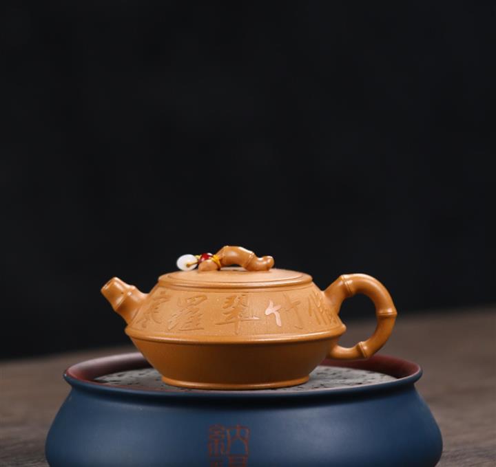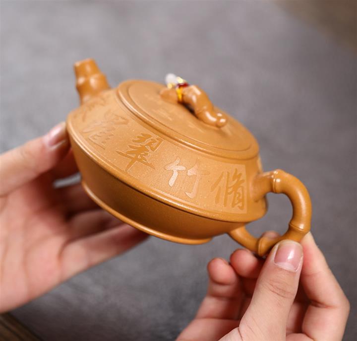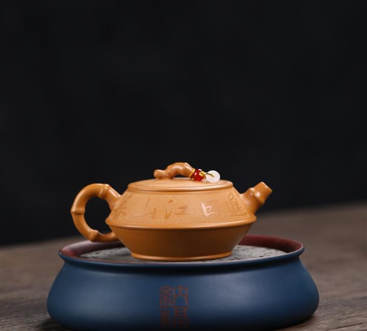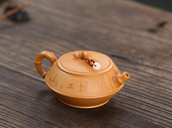 原礦本山綠泥雙線竹鼓紫砂壺POT5608