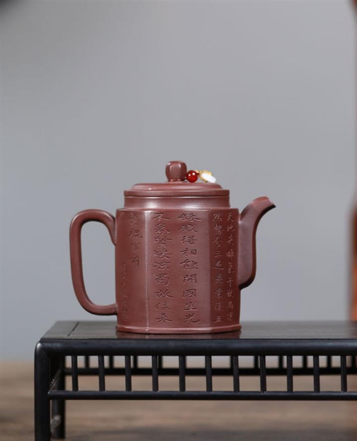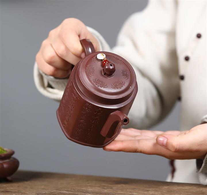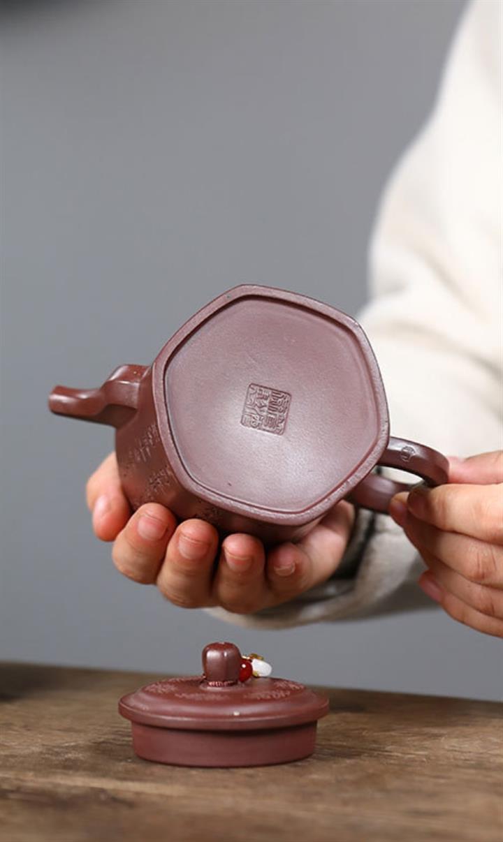 原礦老紫泥六方洋桶紫砂壺POT5679