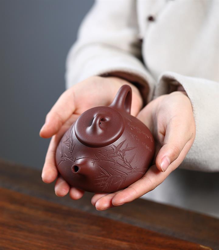朱泥文旦泥繪熊貓紫砂壺POT5701