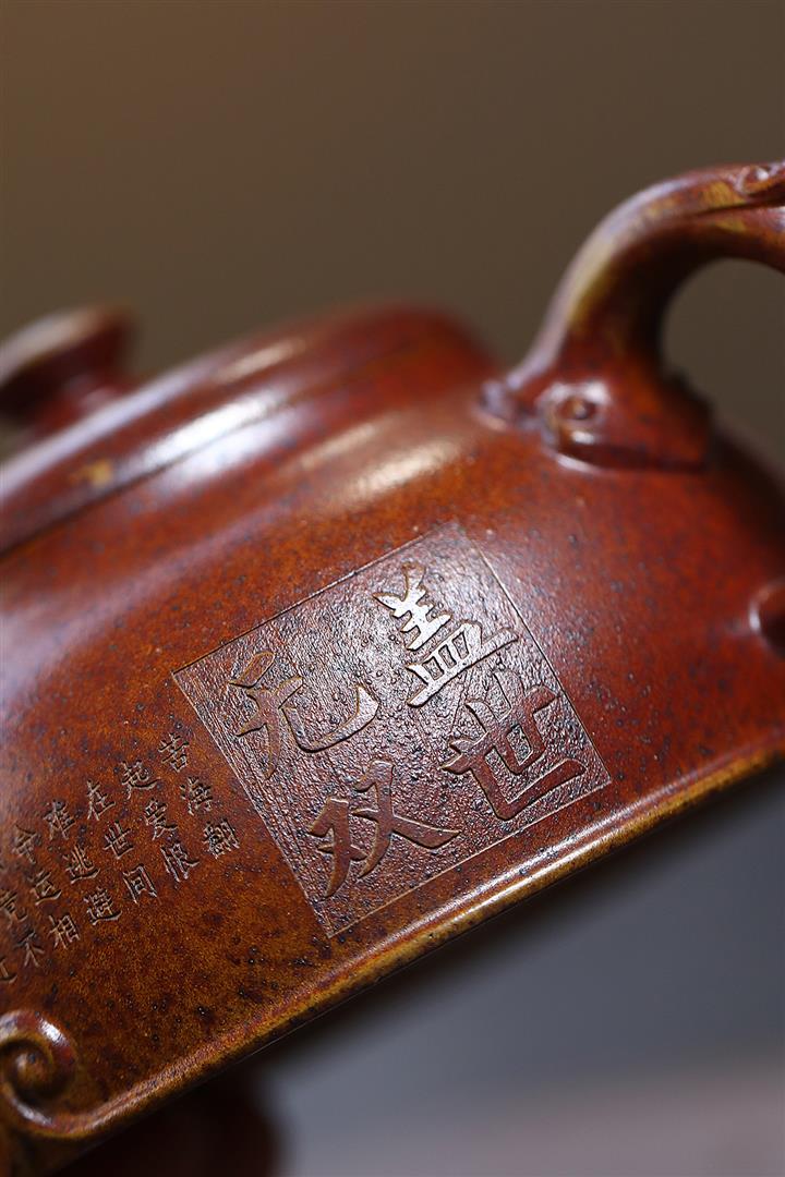 紫泥四方祥龍獻瑞紫砂壺POT5845