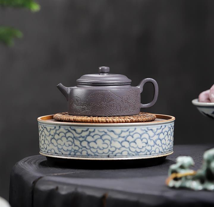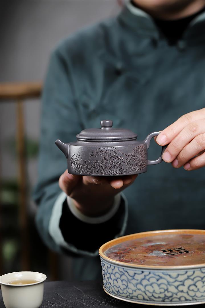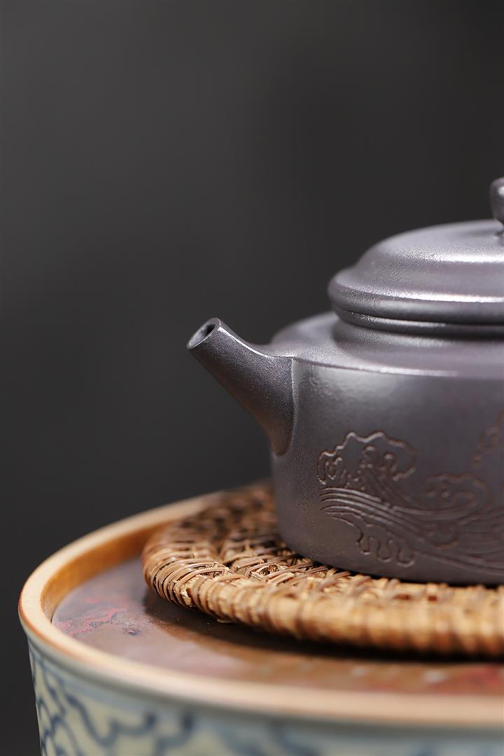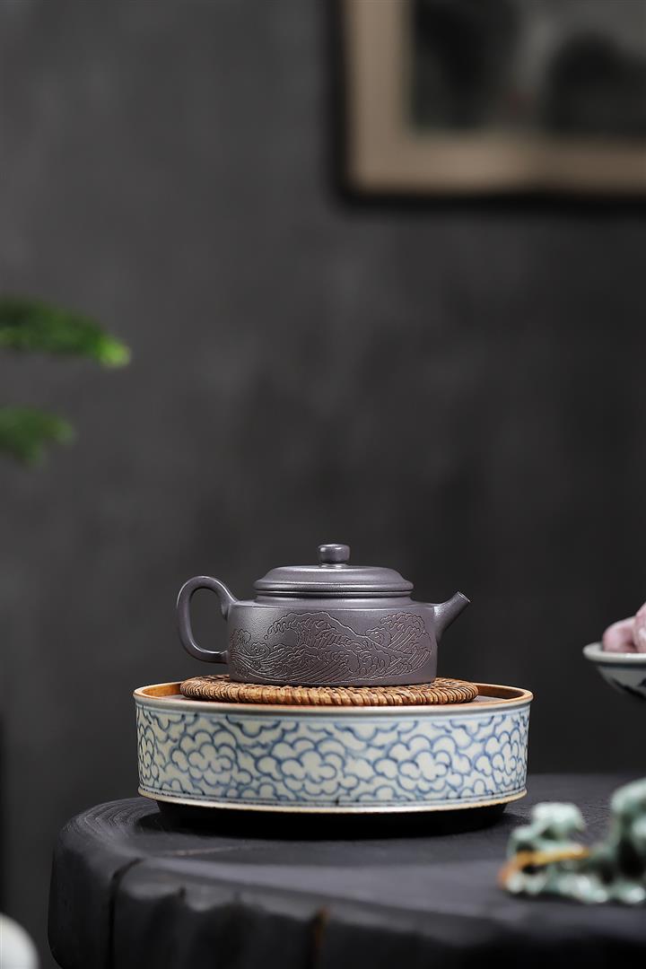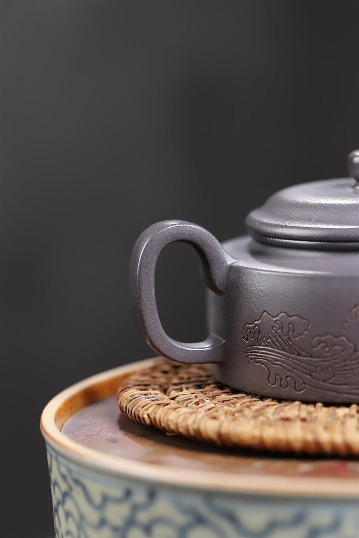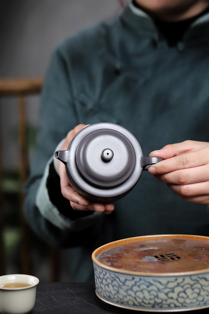原礦天青泥觀滄海扁德鐘紫砂壺POT5858