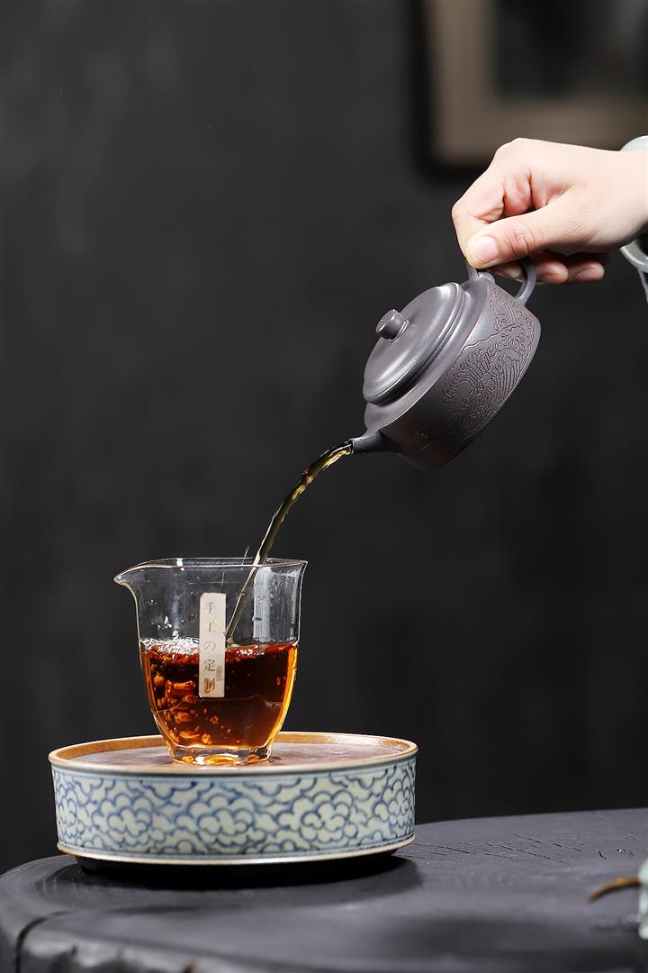 棗紅泥觀山漢瓦紫砂壺POT5884