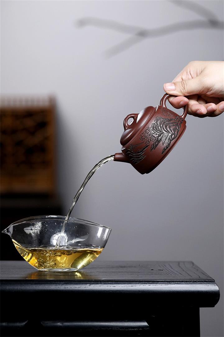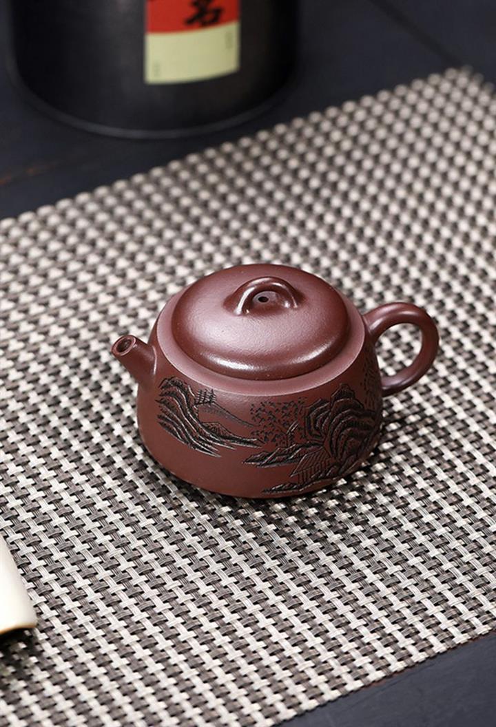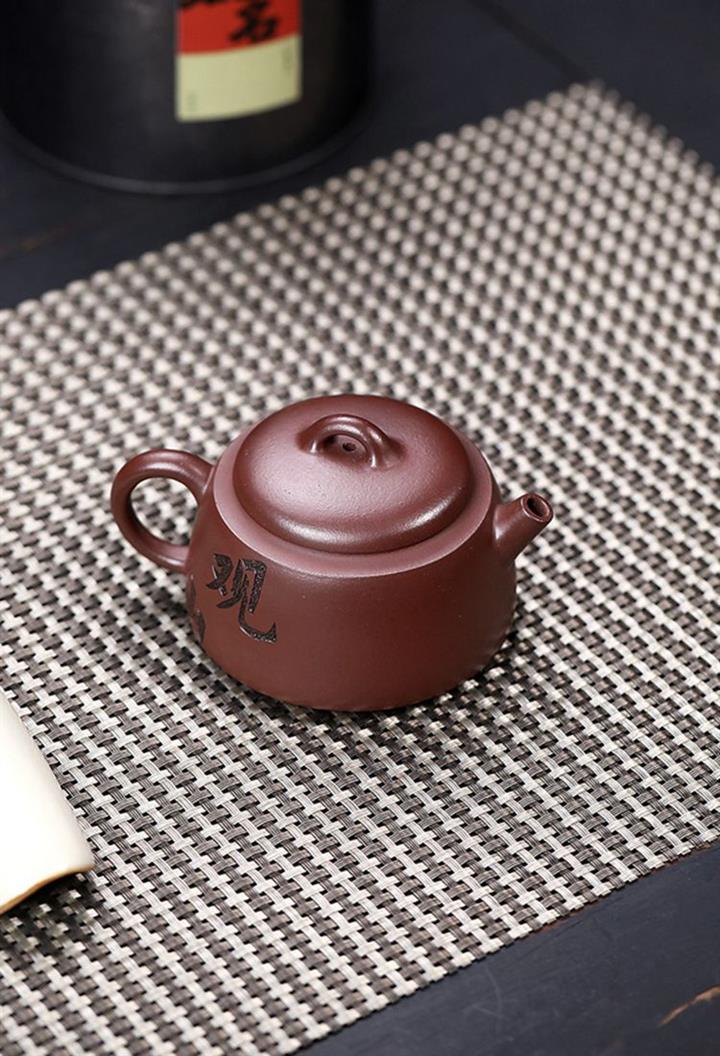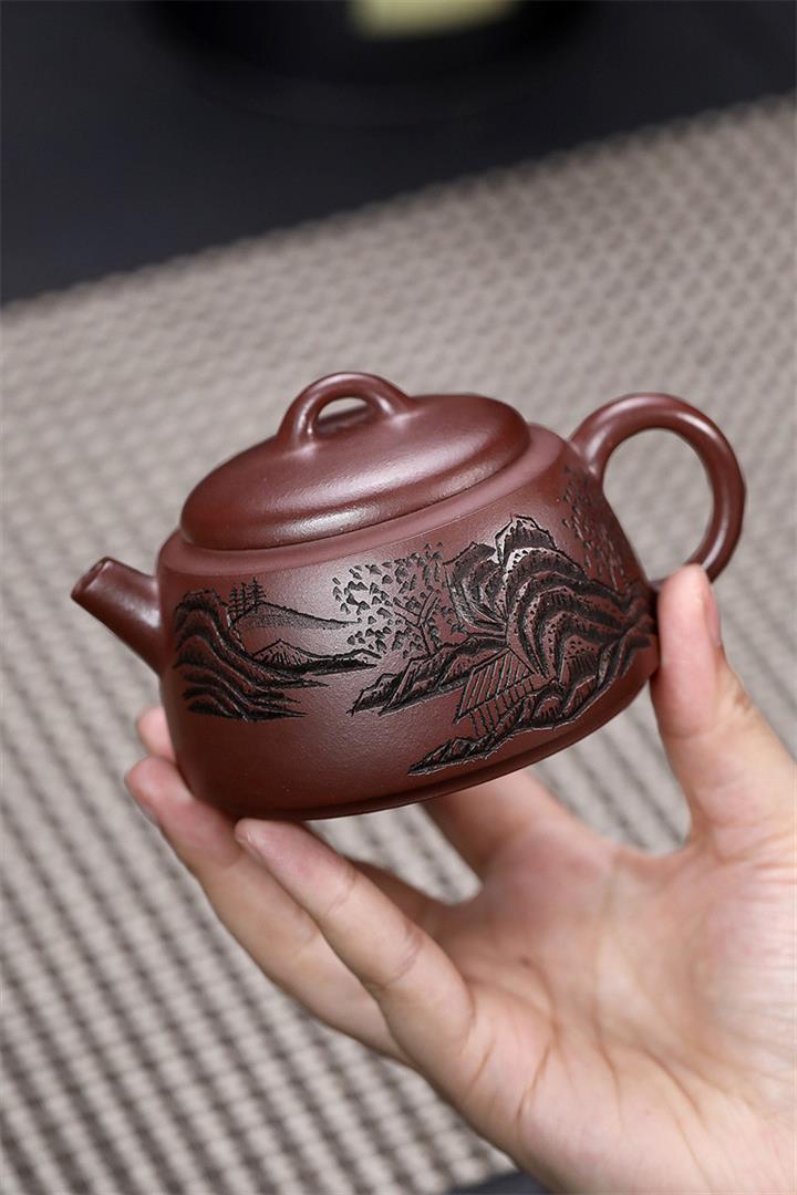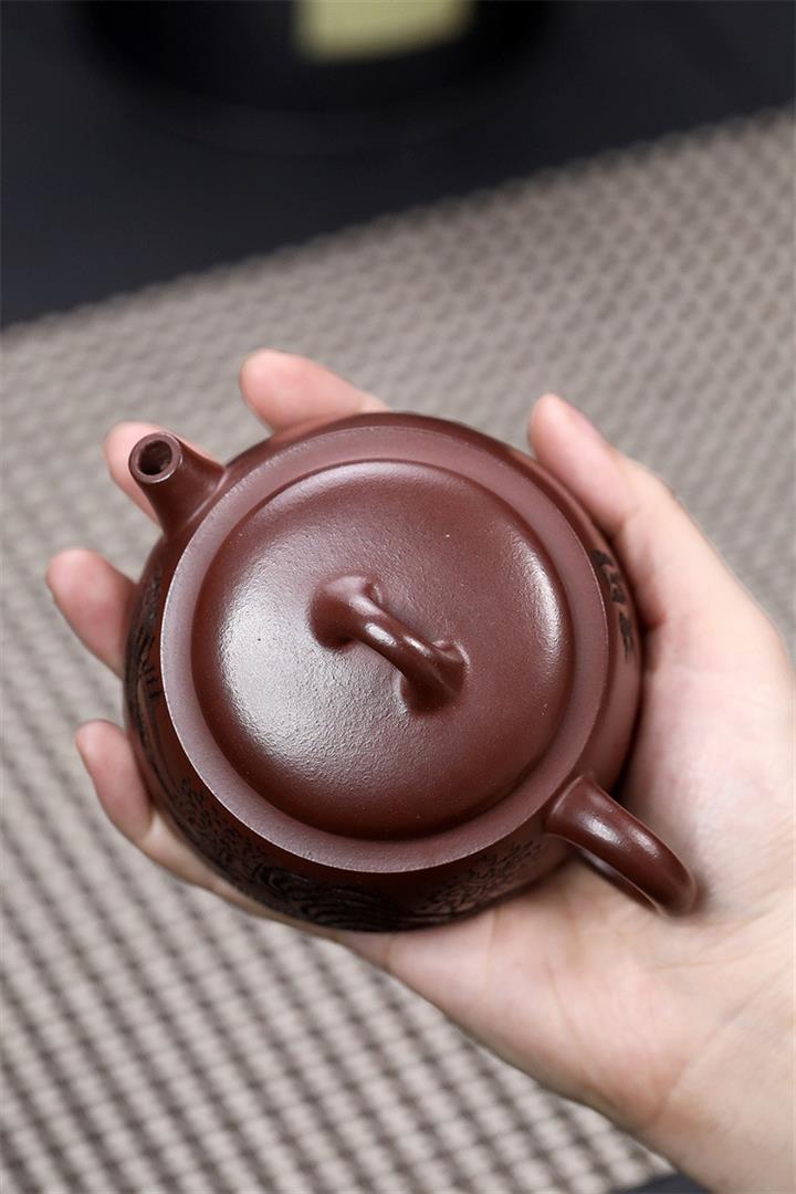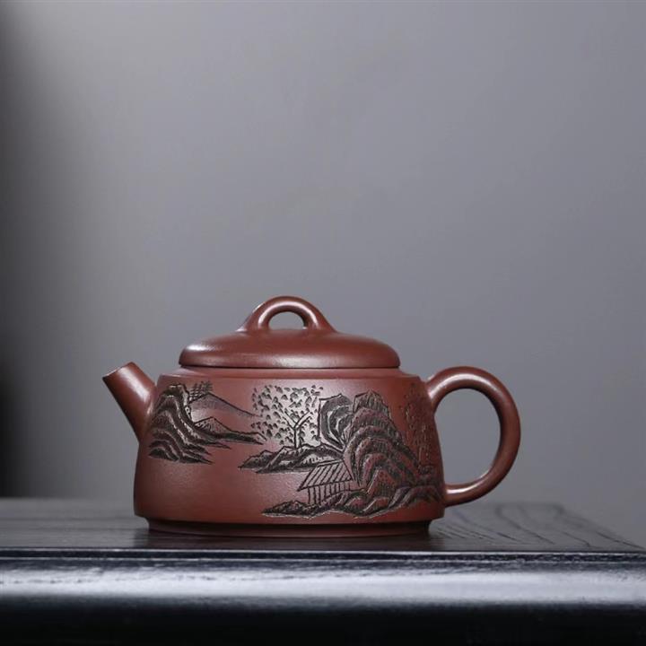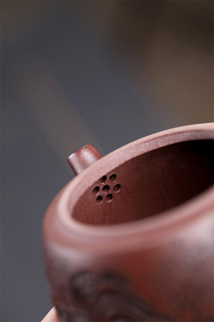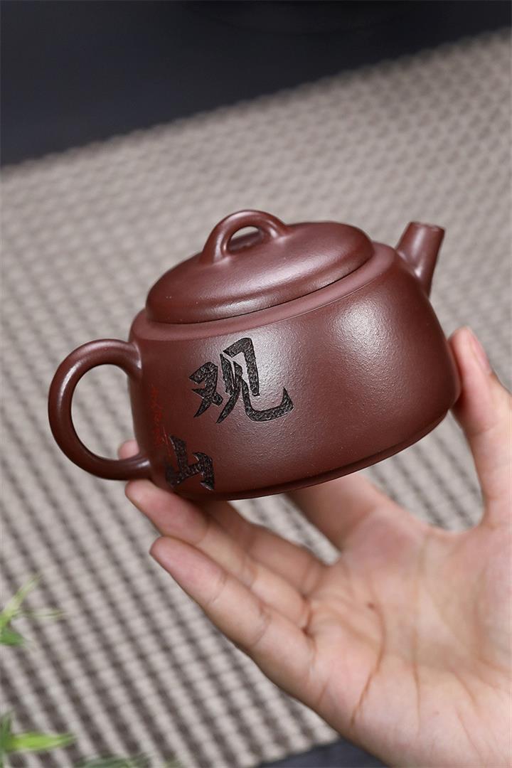 棗紅泥觀山漢瓦紫砂壺POT5884