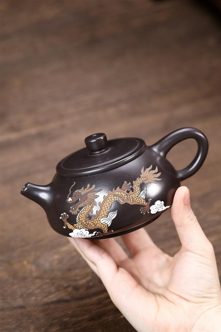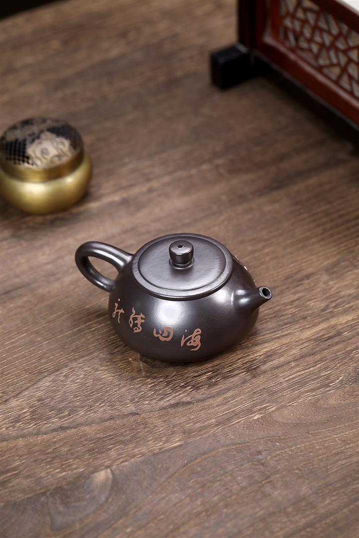 原礦黑泥平蓋石瓢紫砂壺POT5914