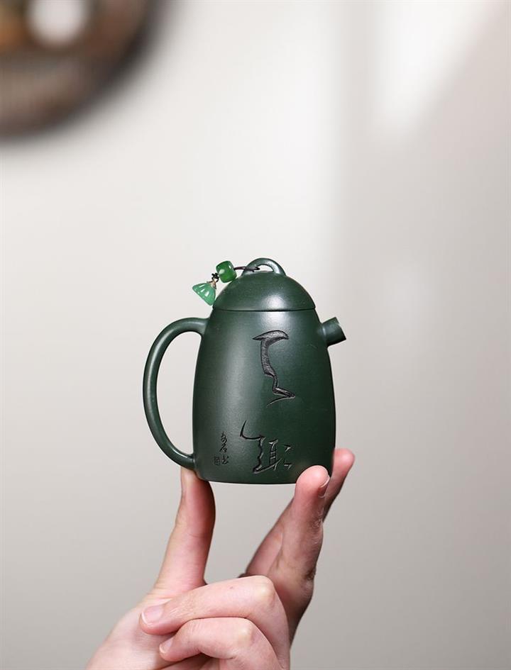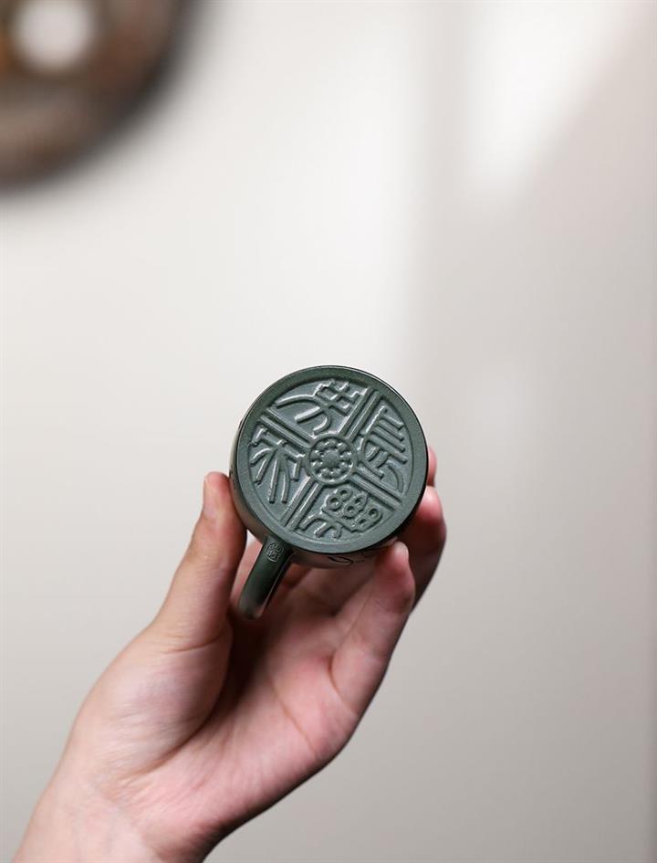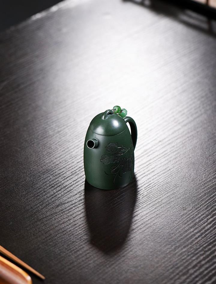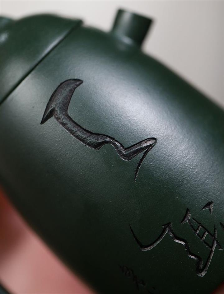 卯·綠泥牡丹扁西施紫砂壺POT6274