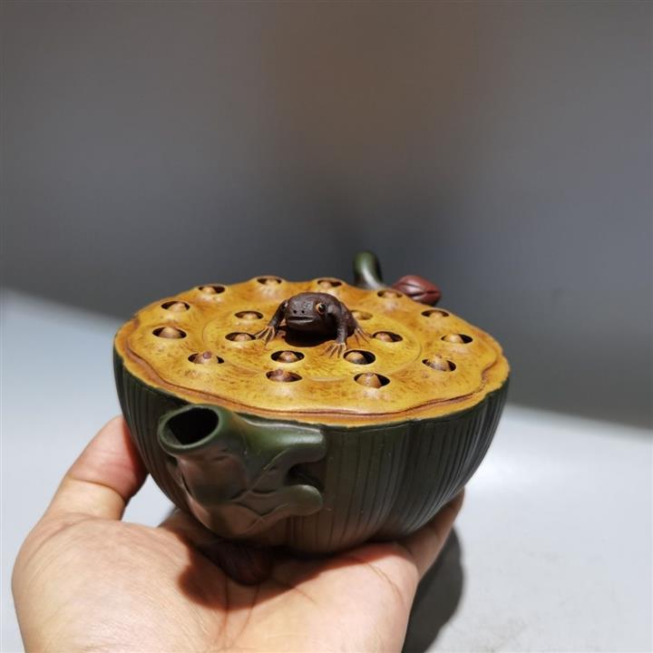 藏品·段泥青蛙蓮子蔣蓉仿古壺