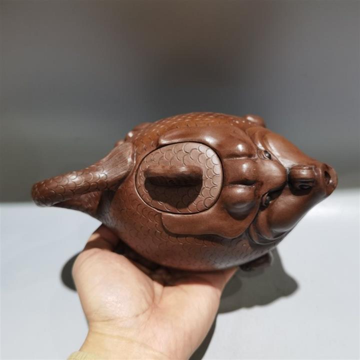 藏品·紫泥魚龍陳鳴遠仿古壺