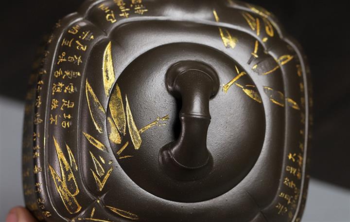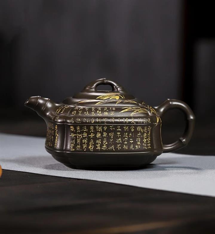 精·翡翠青紫泥抽角竹鼓紫砂壺POT6309