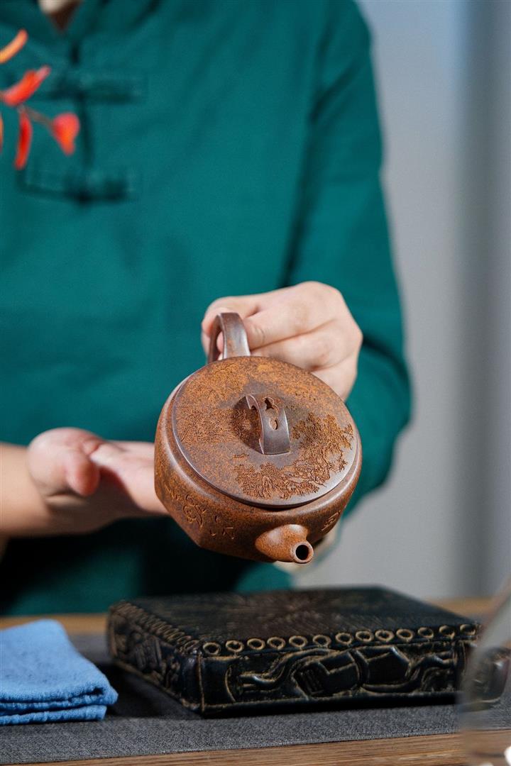 申·原礦高溫段泥本色堆繪漢瓦紫砂壺POT6370