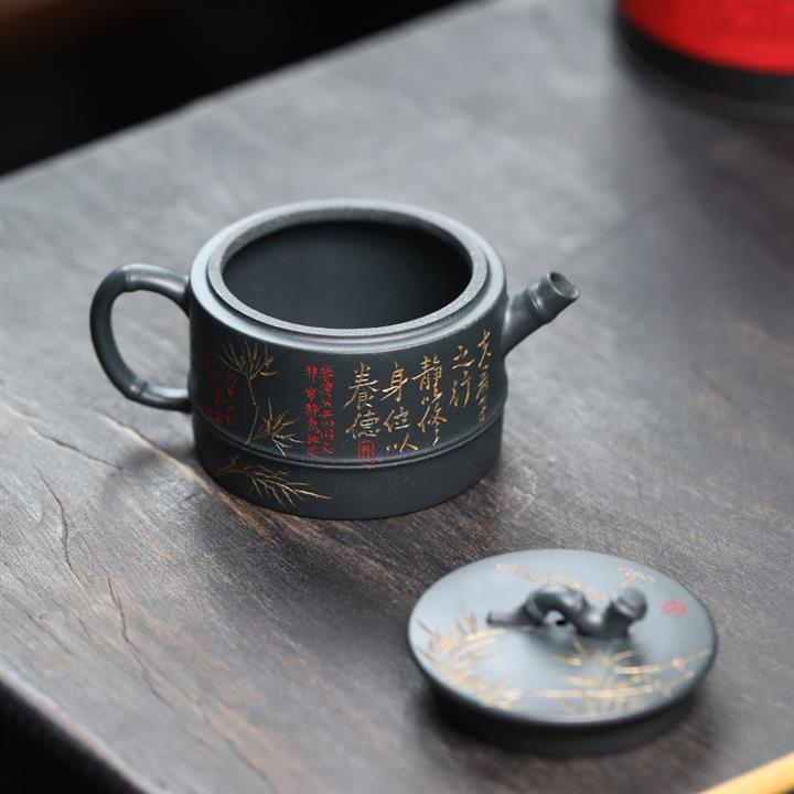寅·九齡君子蘭竹節漢瓦紫砂壺POT6378
