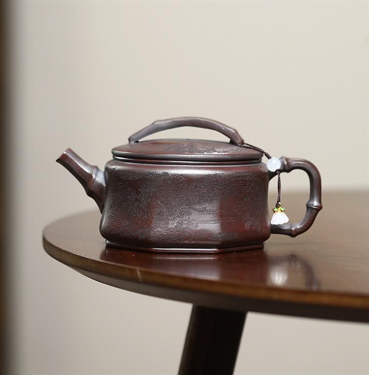 壬·原礦沈香泥百子圖提梁紫砂壺POT6447