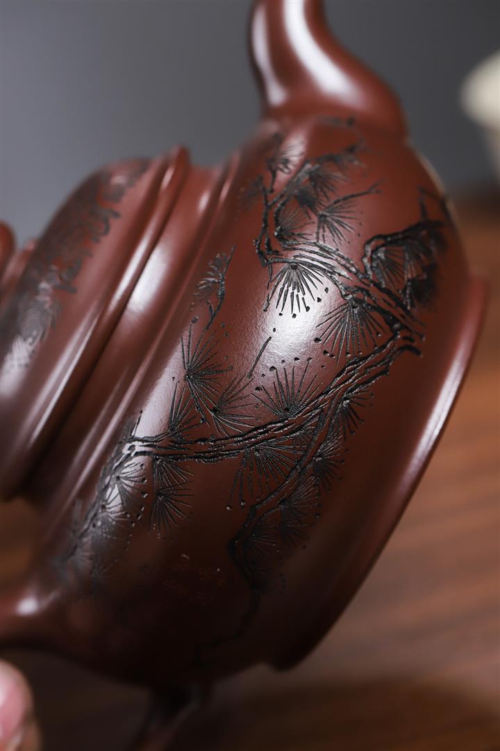 壬·原礦沈香泥百子圖提梁紫砂壺POT6447