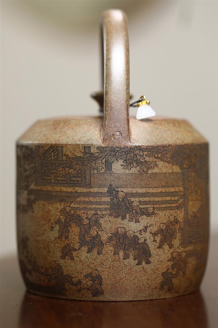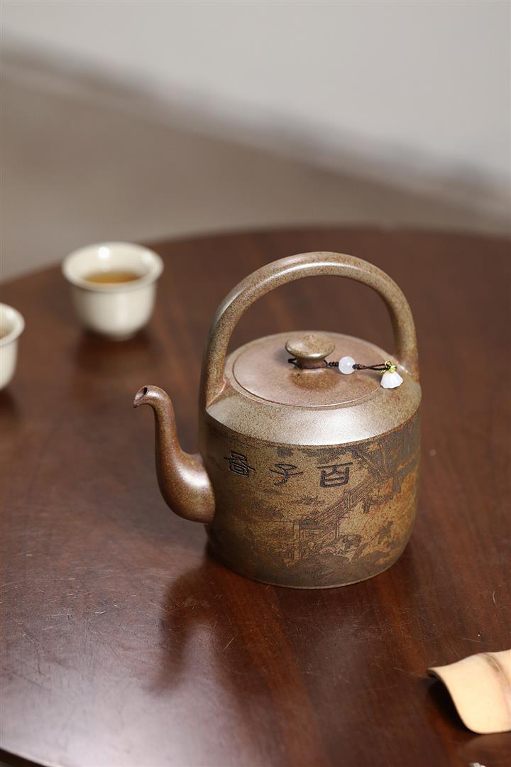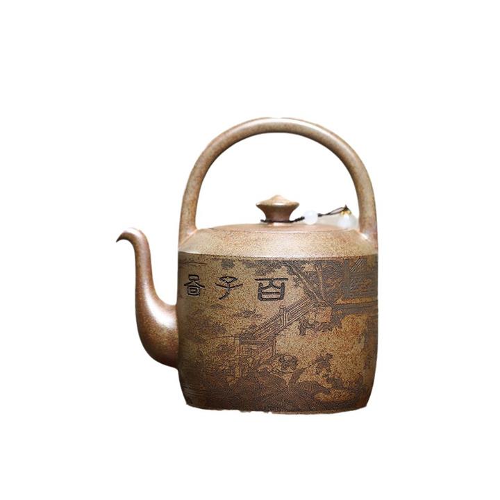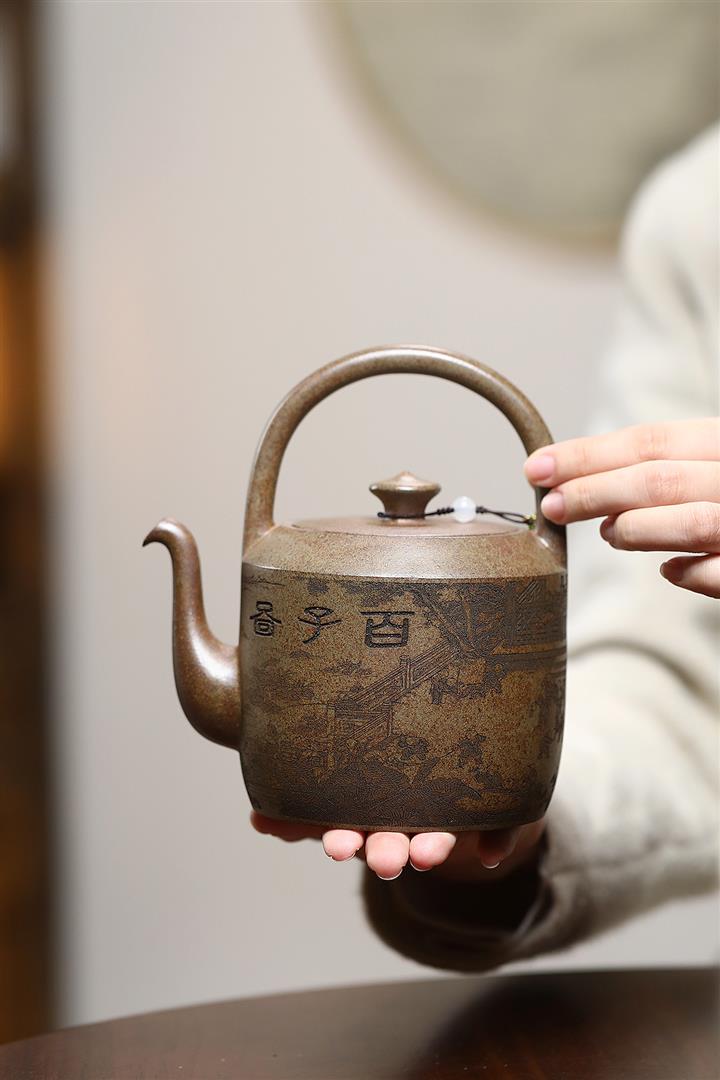 壬·原礦沈香泥百子圖提梁紫砂壺POT6447
