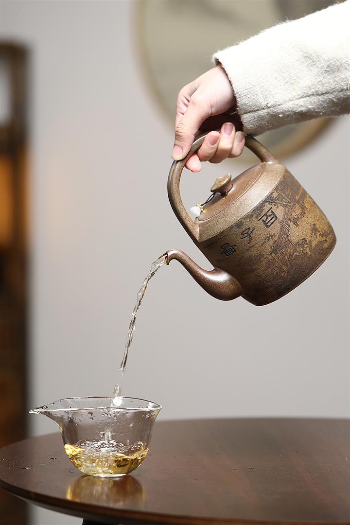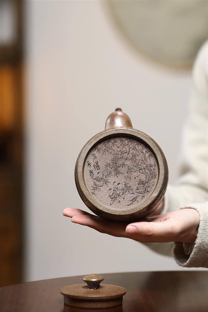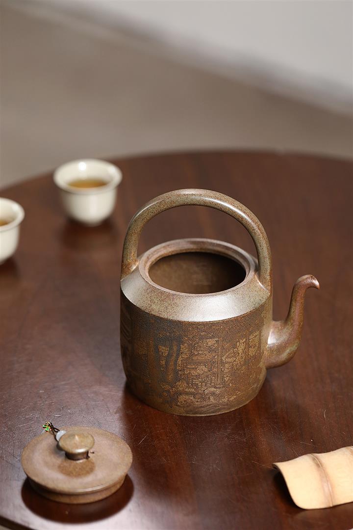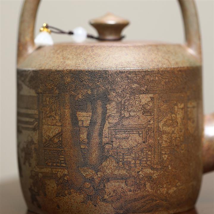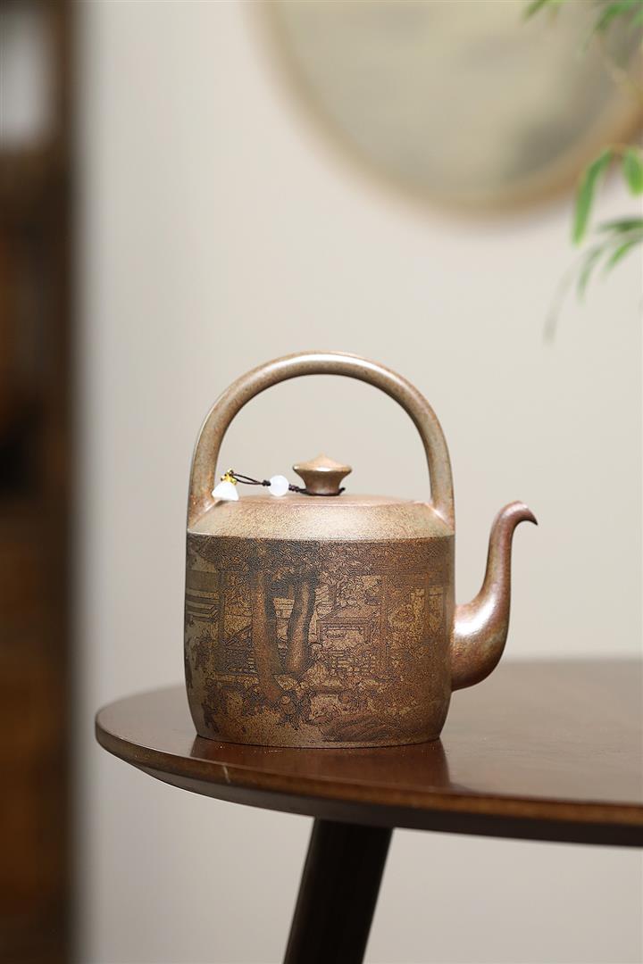 壬·原礦沈香泥百子圖提梁紫砂壺POT6447