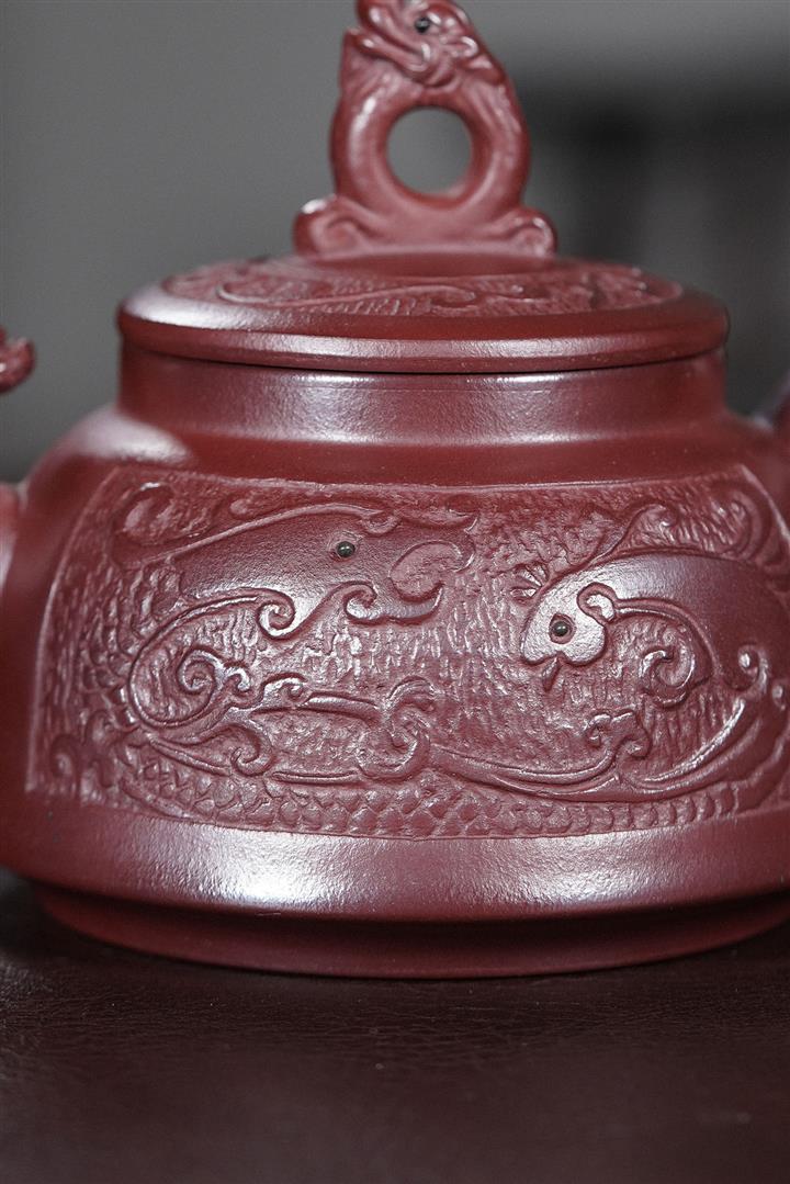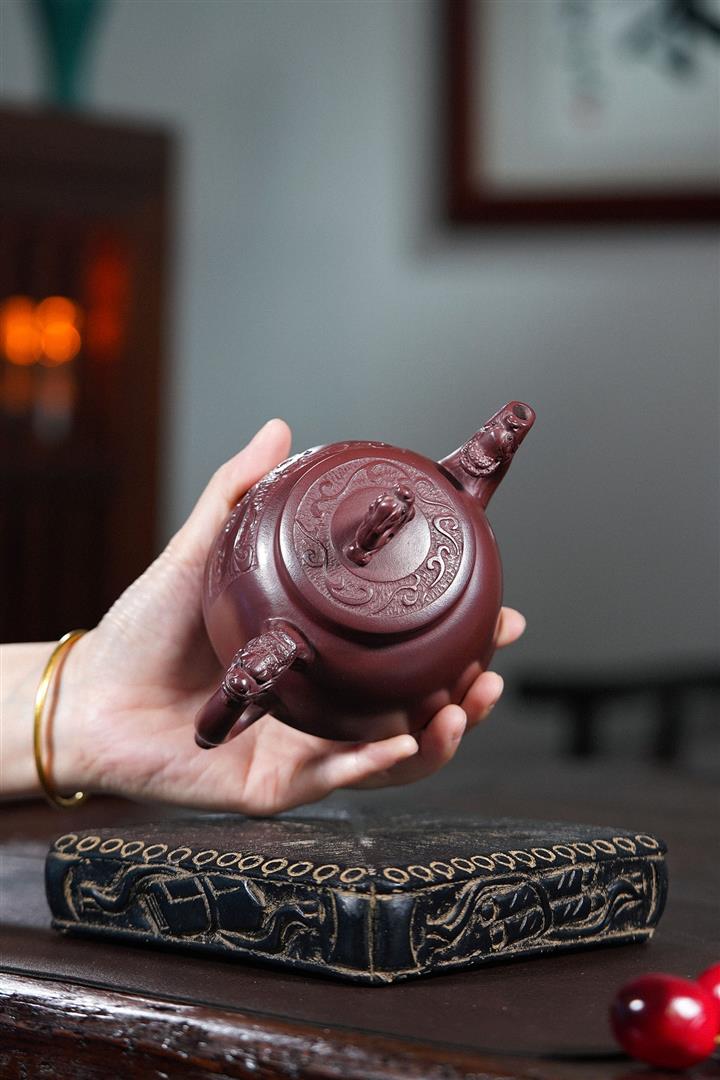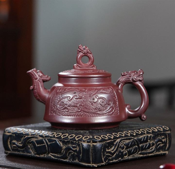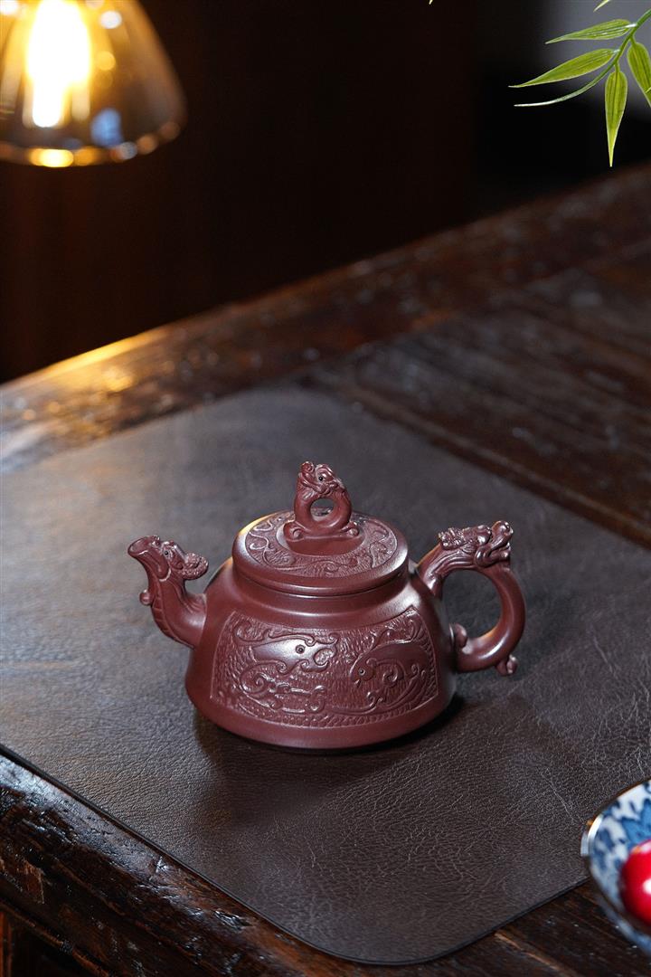 庚·紫鐵血砂龍鳳呈祥紫砂壺POT6409