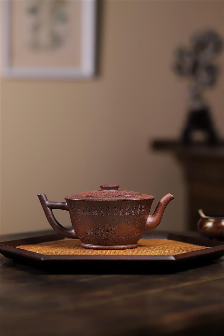 原礦赤龍血砂手工彩繪三足橋瓢茶具POT6688