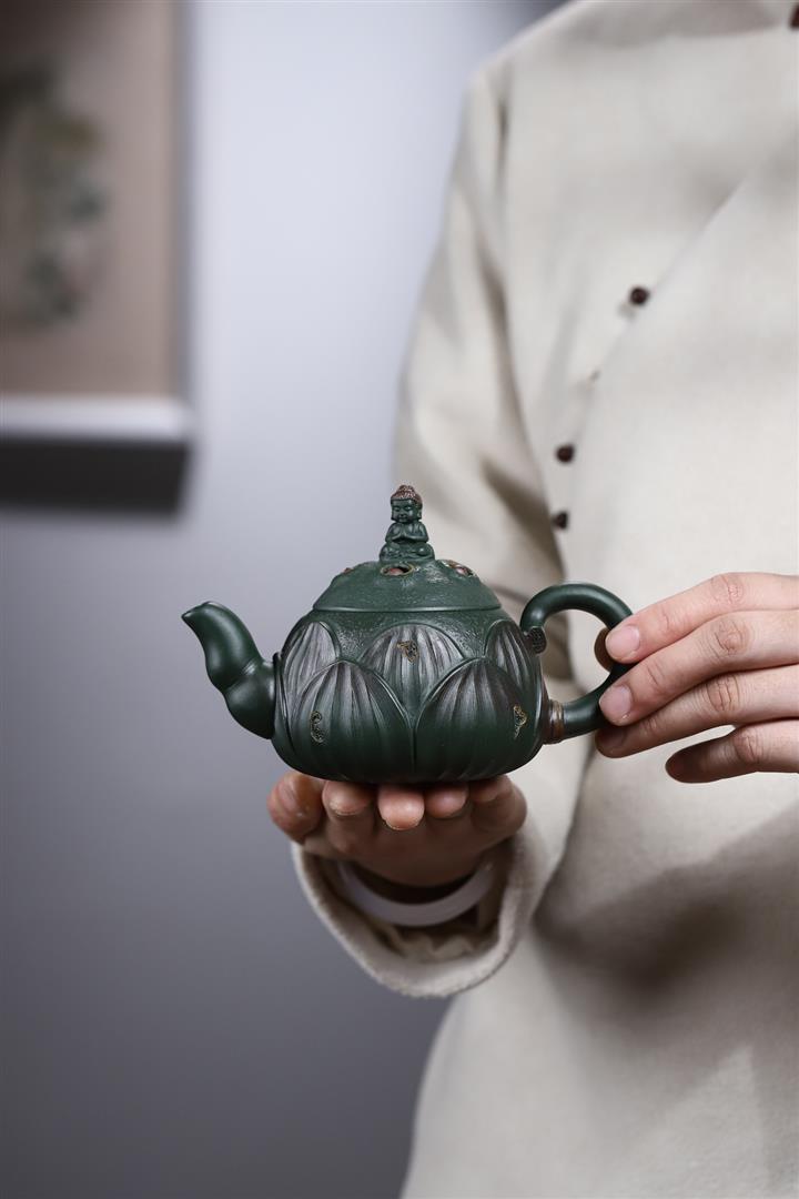 辛·墨綠泥佛蓮紫砂壺POT6433
