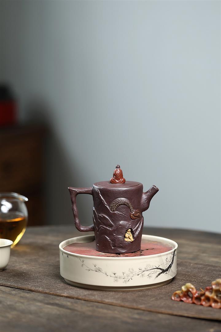 朱泥捂灰金龜換酒手工描金紫砂壺POT6500