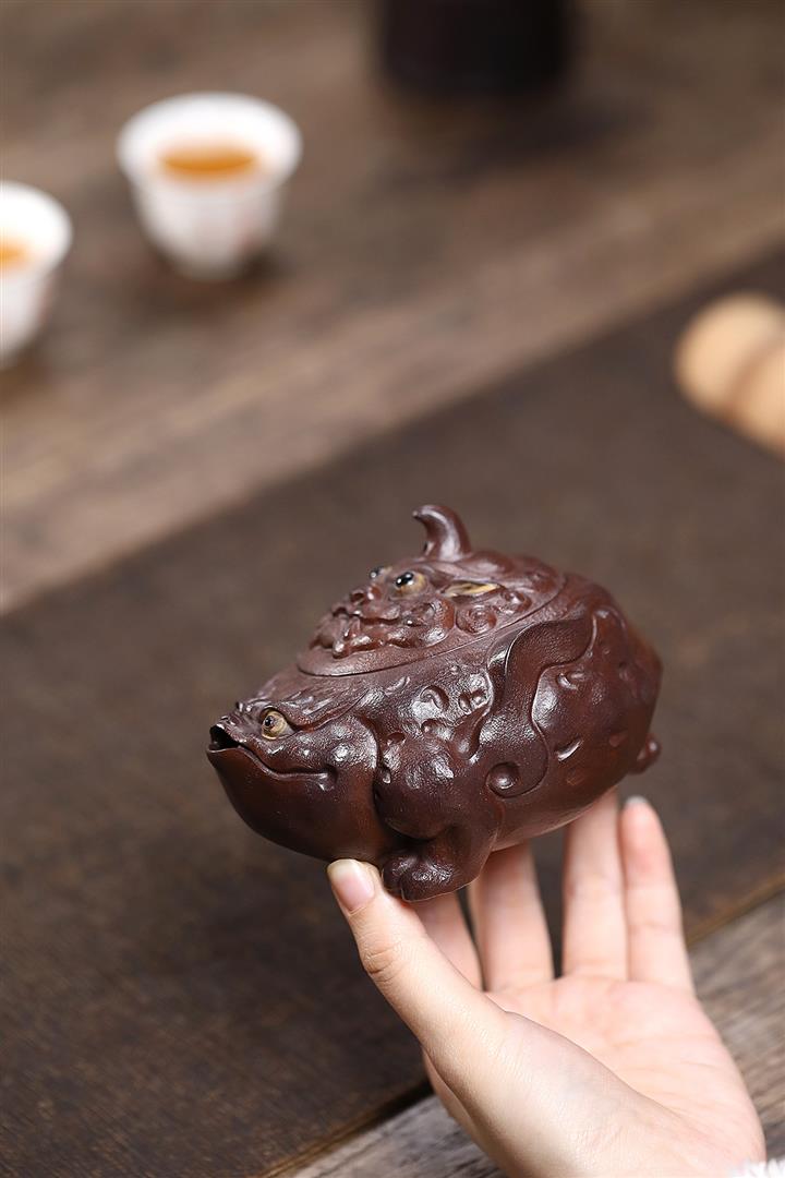 原礦紫泥手工製作金蟾手抓壺POT6571