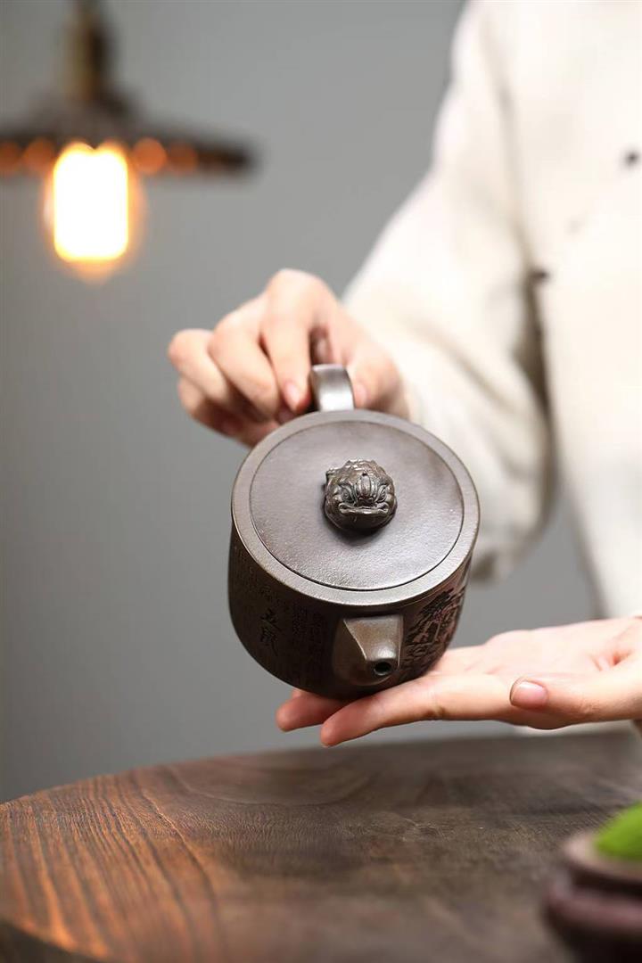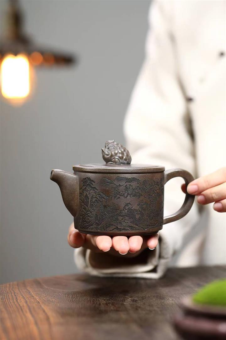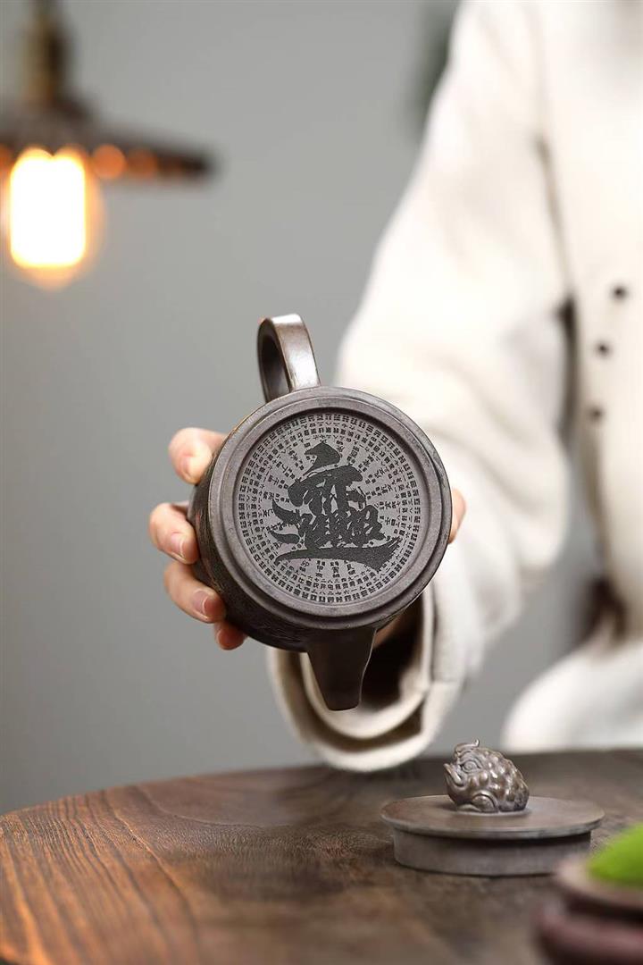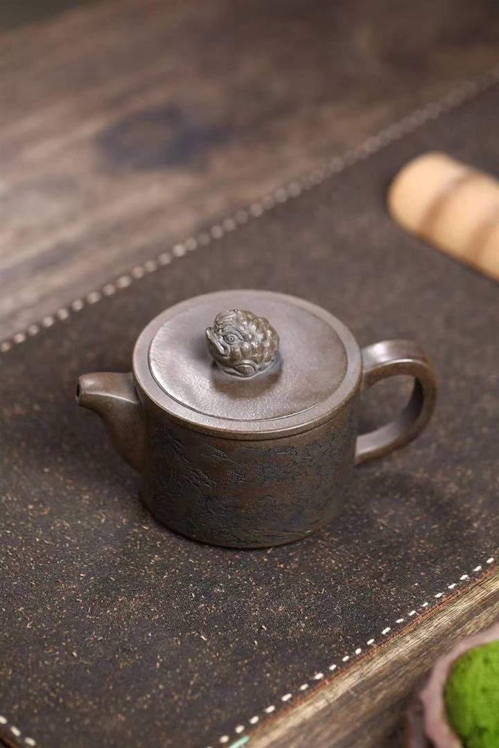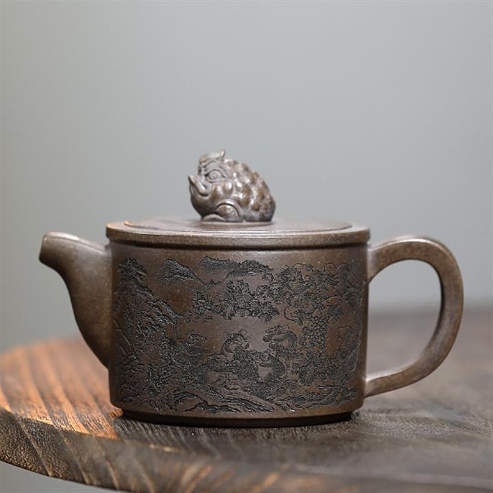 原礦陳腐紫泥刻繪雲龍德鐘壺POT6575