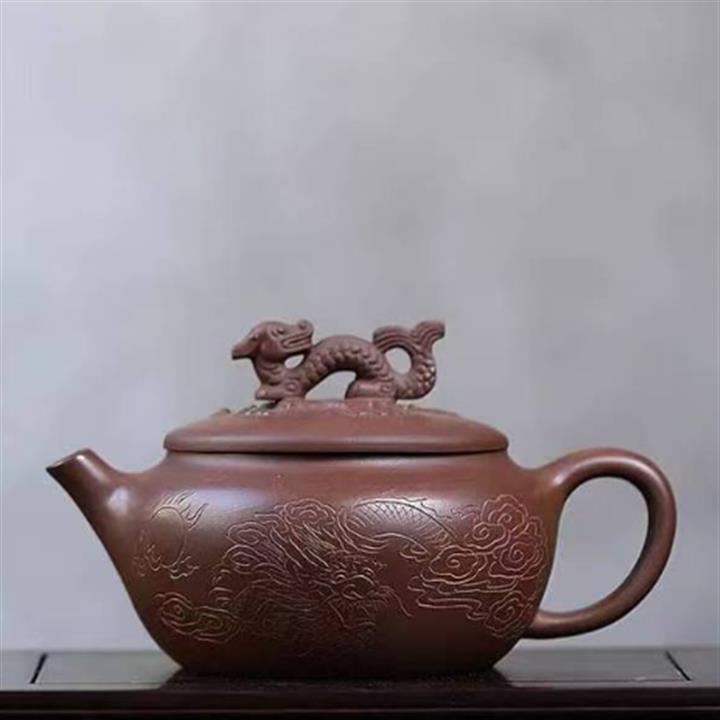 原礦陳腐紫泥刻繪雲龍德鐘壺POT6575