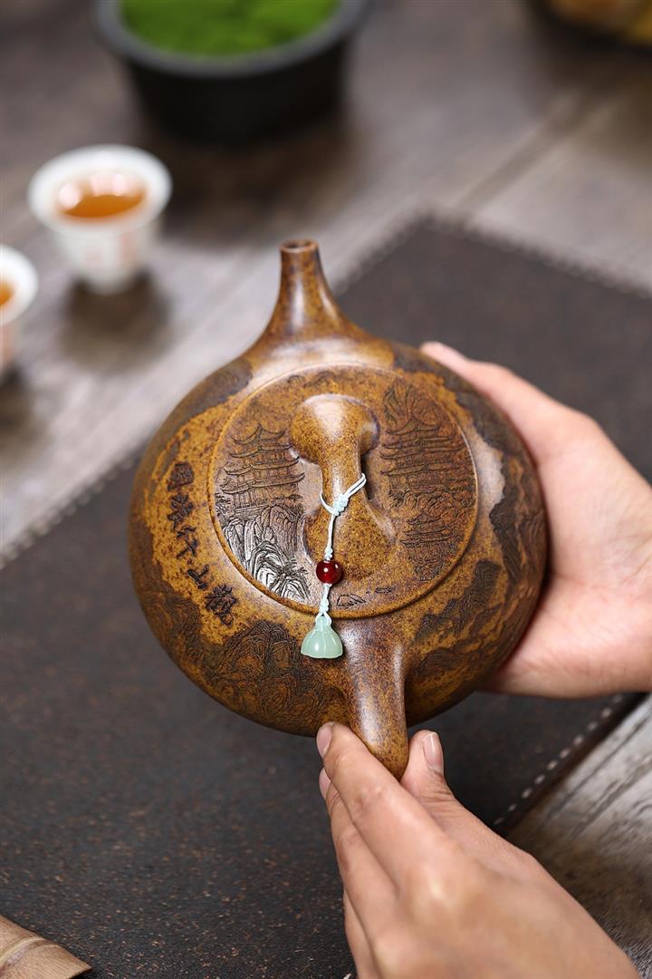 紫砂使用越久,壺身色澤越發光亮照人,氣韻溫雅。紫砂壺長久使用器身會因撫摸擦拭,變得越發溫潤光澤!