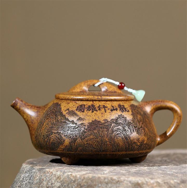 原礦高溫柴燒龍骨金砂手工觀山圖景舟石瓢壺POT6639