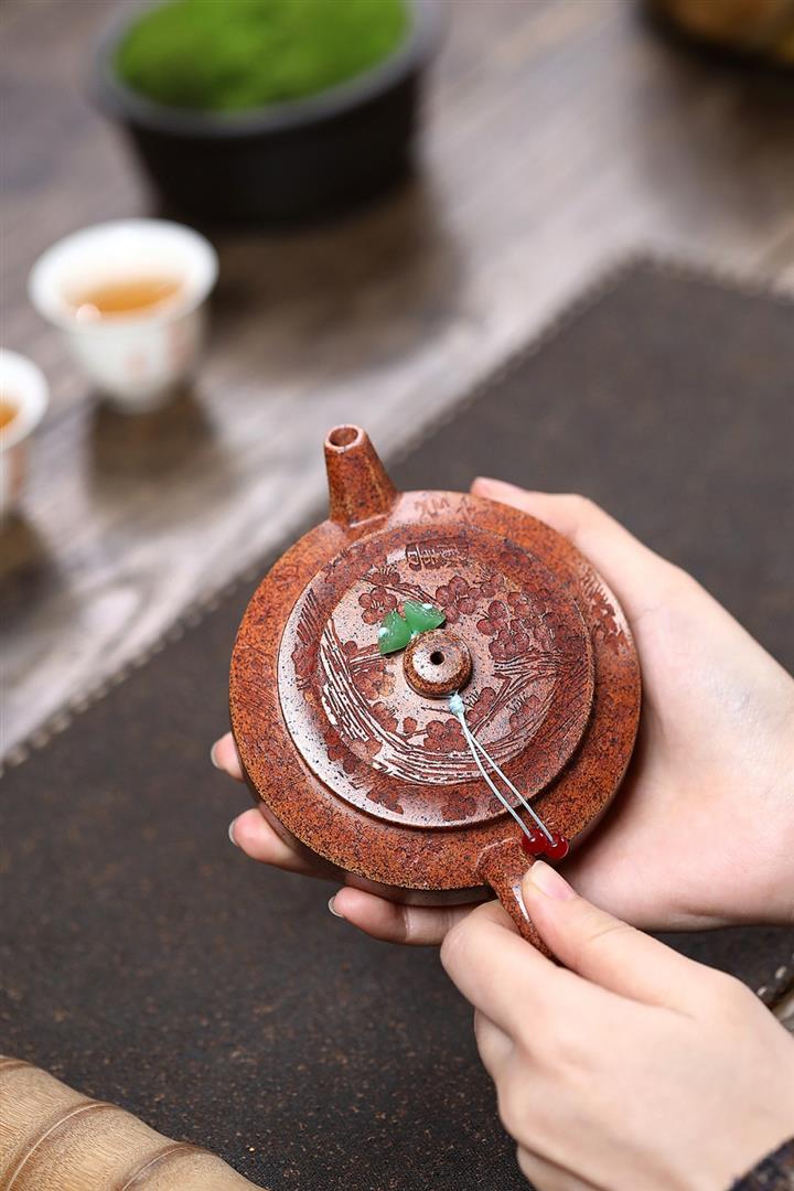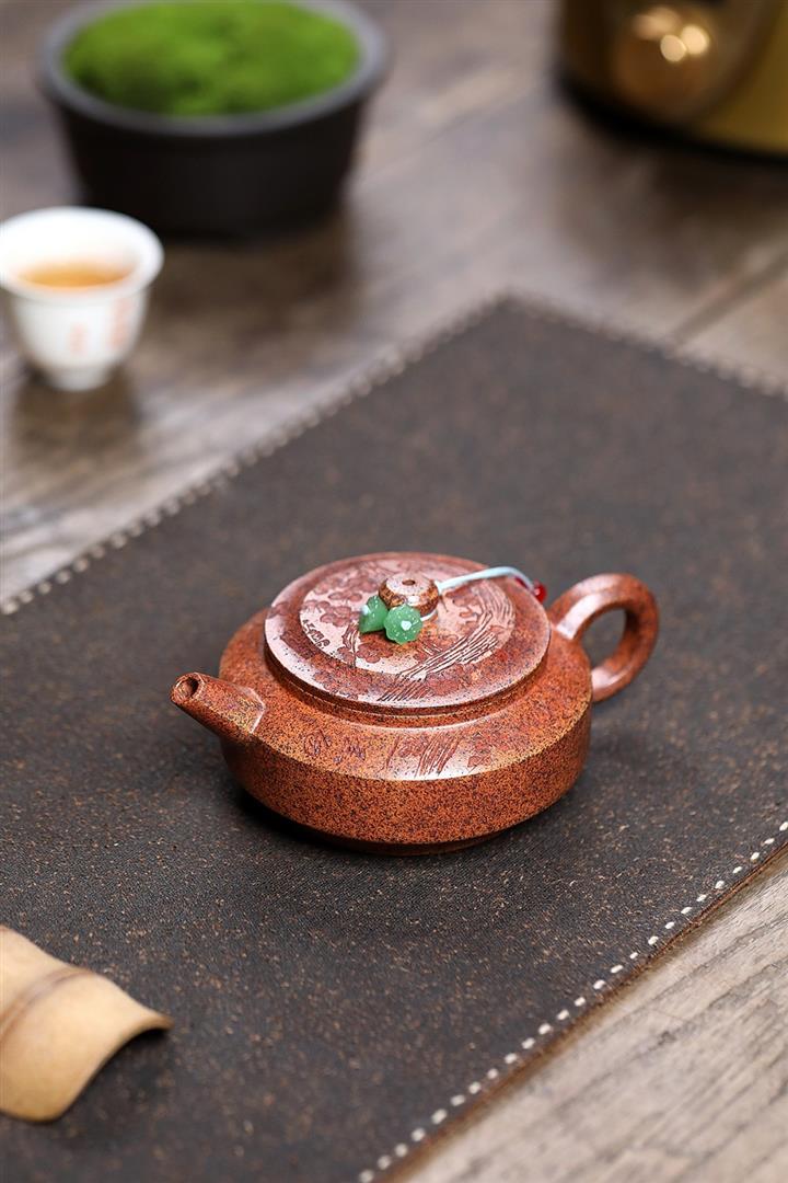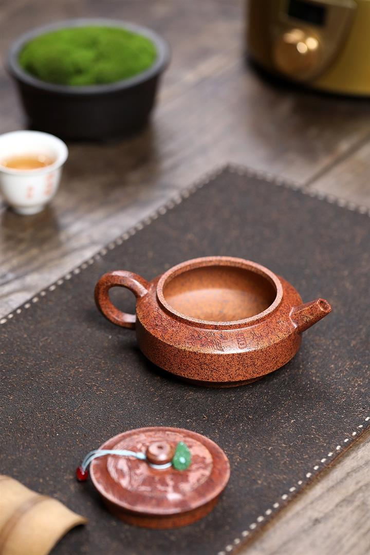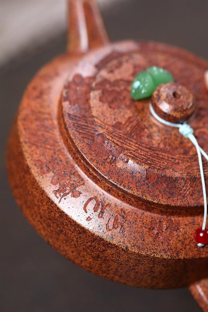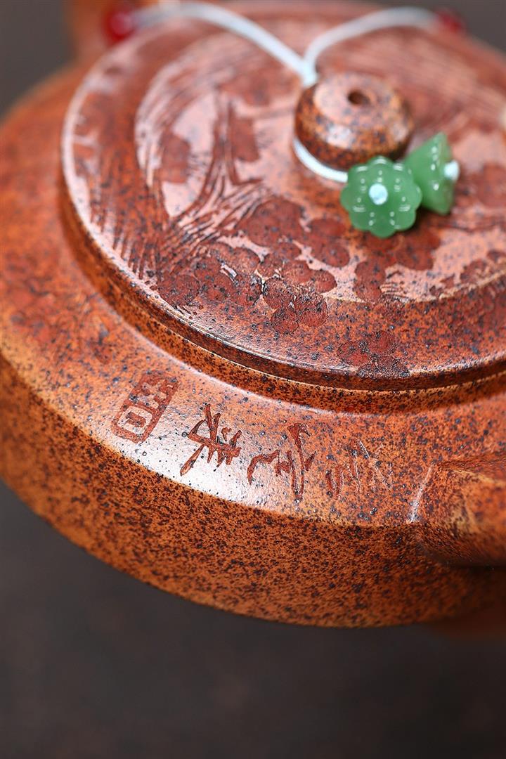 原礦龍骨金砂柴燒手工刻梅周盤茶壺POT6642