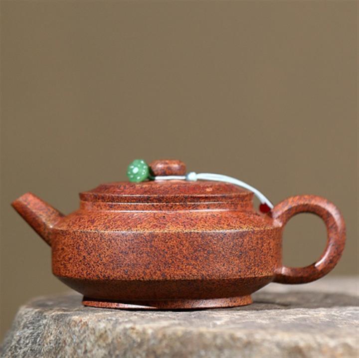 【泥料特點】砂土氣重,似淳實農民,日久使用,漸露鋒芒,養成變化,溫潤莊重。紫砂是一種雙重氣孔結構的多孔性材質,氣孔微細,密度高。用紫砂壺沏茶,不失原味,且香不渙散,得茶之真香真味。